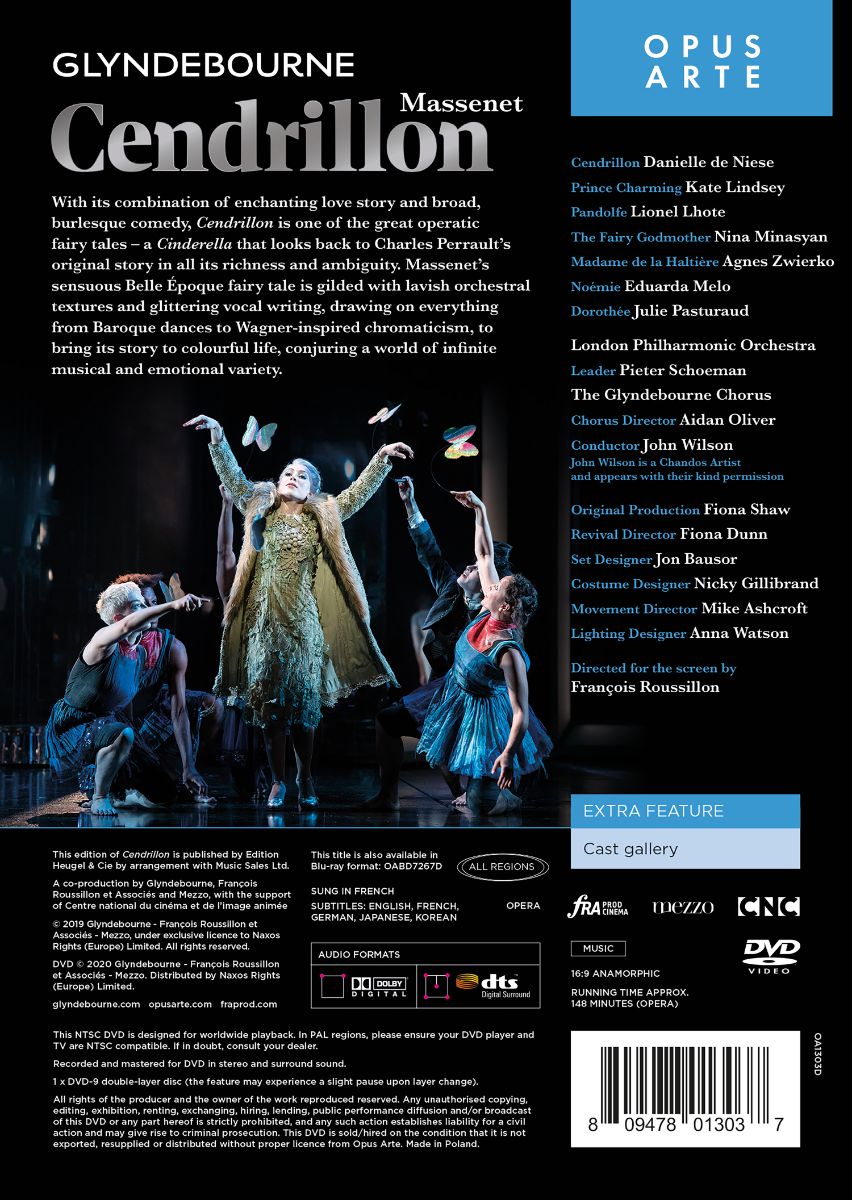 Das Stück stand 2018 und 2019 unter der Regie von Fiona Shaw auf dem Programm des Festivals von Glyndebourne und wurde von Publikum und Presse begeistert aufgenommen. Das London Philharmonic Orchestra unter John Wilson glänzte musikalisch; Danielle de Niese als Aschenputtel, Kate Lindsay als Prinz und Nina Minasyan als gute Fee setzen sängerisch Maßstäbe.