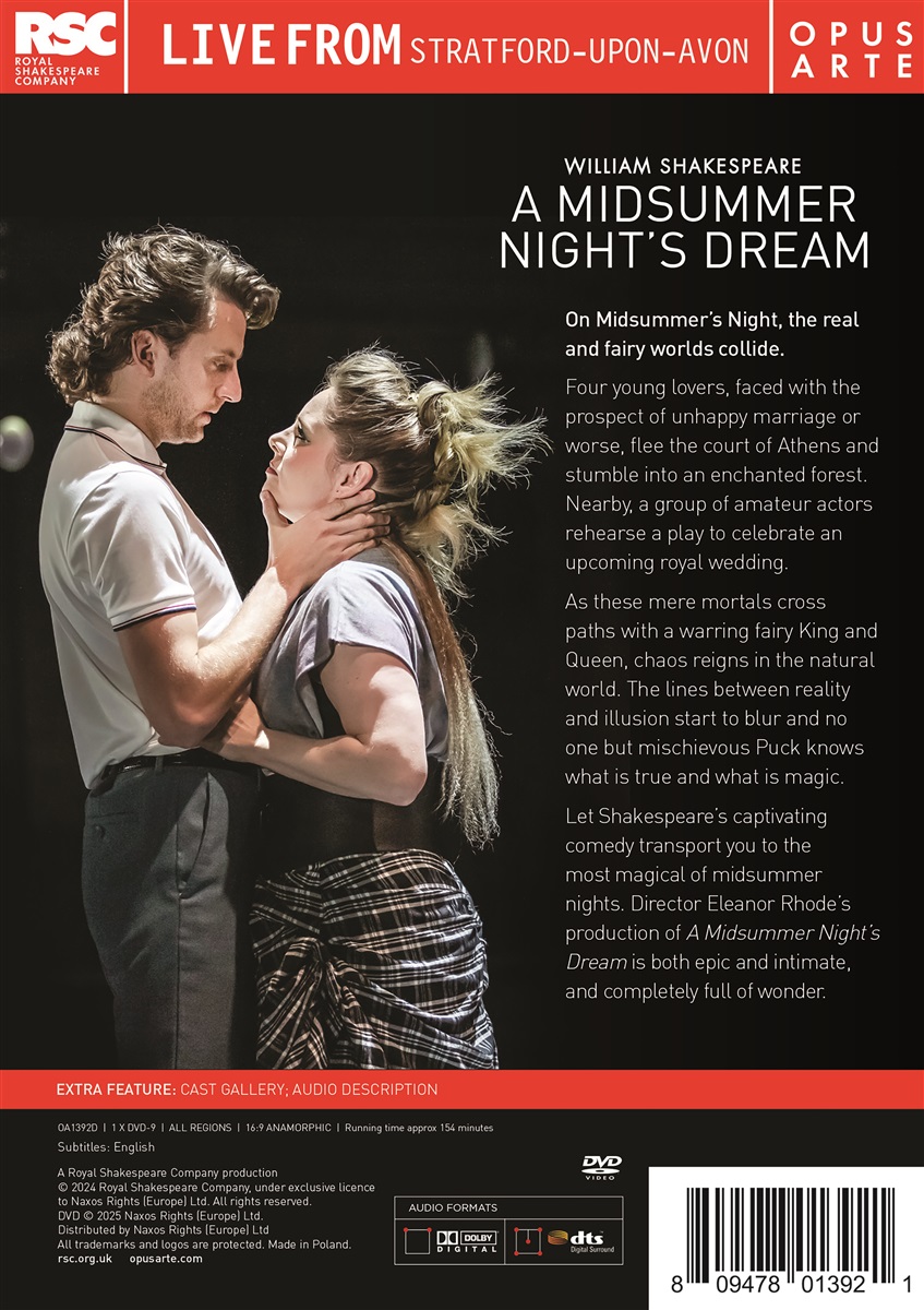Vier junge Liebende, die mit der Aussicht auf eine unglückliche Ehe oder Schlimmeres konfrontiert sind, fliehen vom Hof in Athen und stolpern in einen verzauberten Wald. In der Nähe probt eine Gruppe von Laienschauspielern ein Stück, um eine bevorstehende königliche Hochzeit zu feiern. Als die Sterblichen auf einen sich streitenden Feenkönig und eine Feenkönigin treffen, herrscht Chaos in der Natur. Die Grenzen zwischen Realität und Illusion verschwimmen und niemand außer dem schelmischen Puck weiß, was wahr und was magisch ist.