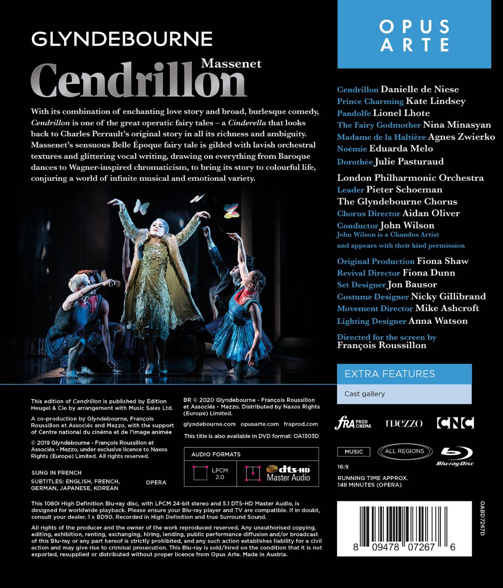 Das Stück stand 2018 und 2019 unter der Regie von Fiona Shaw auf dem Programm des Festivals von Glyndebourne und wurde von Publikum und Presse begeistert aufgenommen. Das London Philharmonic Orchestra unter John Wilson glänzte musikalisch; Danielle de Niese als Aschenputtel, Kate Lindsay als Prinz und Nina Minasyan als gute Fee setzen sängerisch Maßstäbe.