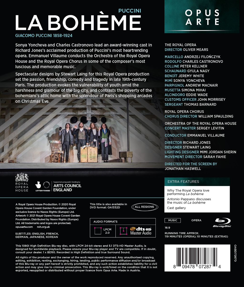 Die gefeierten Weltstars Sonya Yoncheva und Charles Castronovo übernehmen die Hauptrollen in Richard Jones' Inszenierung von Puccinis „La Bohème“; Opernexperte Emmanuel Villaume dirigiert das Orchester des Royal Opera House und den Royal Opera Chorus.