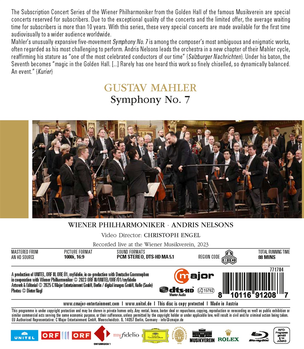 Gustav Mahlers ungewöhnlich umfangreiche fünfteilige Sinfonie Nr. 7 ist eines der vieldeutigsten und rätselhaftesten Werke des Komponisten und wird oft als sein schwierigstes Werk angesehen. Andris Nelsons führt das Orchester in ein neues Kapitel seines Mahler-Zyklus und bestätigt damit seinen Status als einer der am meisten gefeierten Dirigenten unserer Zeit. Unter seiner Leitung verwandelt sich die komplexe Sinfonie Nr. 7 förmlich in klangliche Magie. Selten wurde dieses Werk mit solcher Präzision und Dynamik aufgeführt, selten hat man dieses Werk so fein ausgearbeitet und dynamisch ausgewogen gehört.