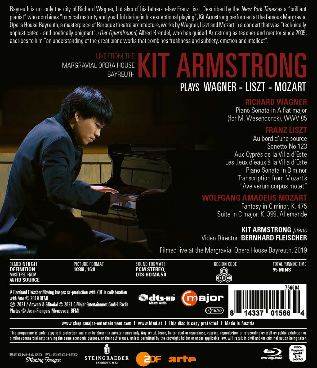 Der US-amerikanische Pianist, Organist und Komponist Kit Armstrong (*1992) galt von Kindesbeinen als hochbegabt und studiert schon als Pre-Teen Musik, Mathematik, Biologie und Physik. Sein Lehrer Alfred Brendel sagte über ihn, er sei die „größte musikalische Begabung, der ich in meinem ganzen Leben begegnet bin.“ Armstrong spielte am 24. Juli 2019 im markgräflichen Opernhaus Bayreuth (nicht zu verwechseln mit dem Festspielhaus) ein faszinierendes Programm mit Werken von Wagner, Liszt und Mozart. ‚Der Opernfreund‘ resümierte über „den Mann mit den Zauberhänden“, sein Spiel sei an jenem Abend „technisch ausgefeilt – und poetisch ergreifend“ gewesen.