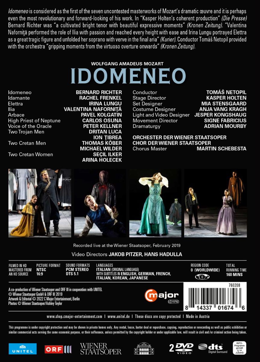 „Idomeneo“ gilt als erste völlig ausgereifte Oper Mozarts, bei der er mutig die üblichen Konventionen der Opera seria überwindet und sich von den Vorgängern und Vorbildern löst. Bemerkenswert sind auch die vielen Chöre der Oper. Im Februar 2019 brachte Kasper Holten das Werk auf die Bühne der Wiener Staatsoper. Besonders die Solistinnen und Solisten Bernard Richter, Irina Lungu und Valentina Naforni?? sowie der musikalische Leiter Tomáš Netopil wurden von der Presse hochgelobt und vom Publikum frenetisch gefeiert.