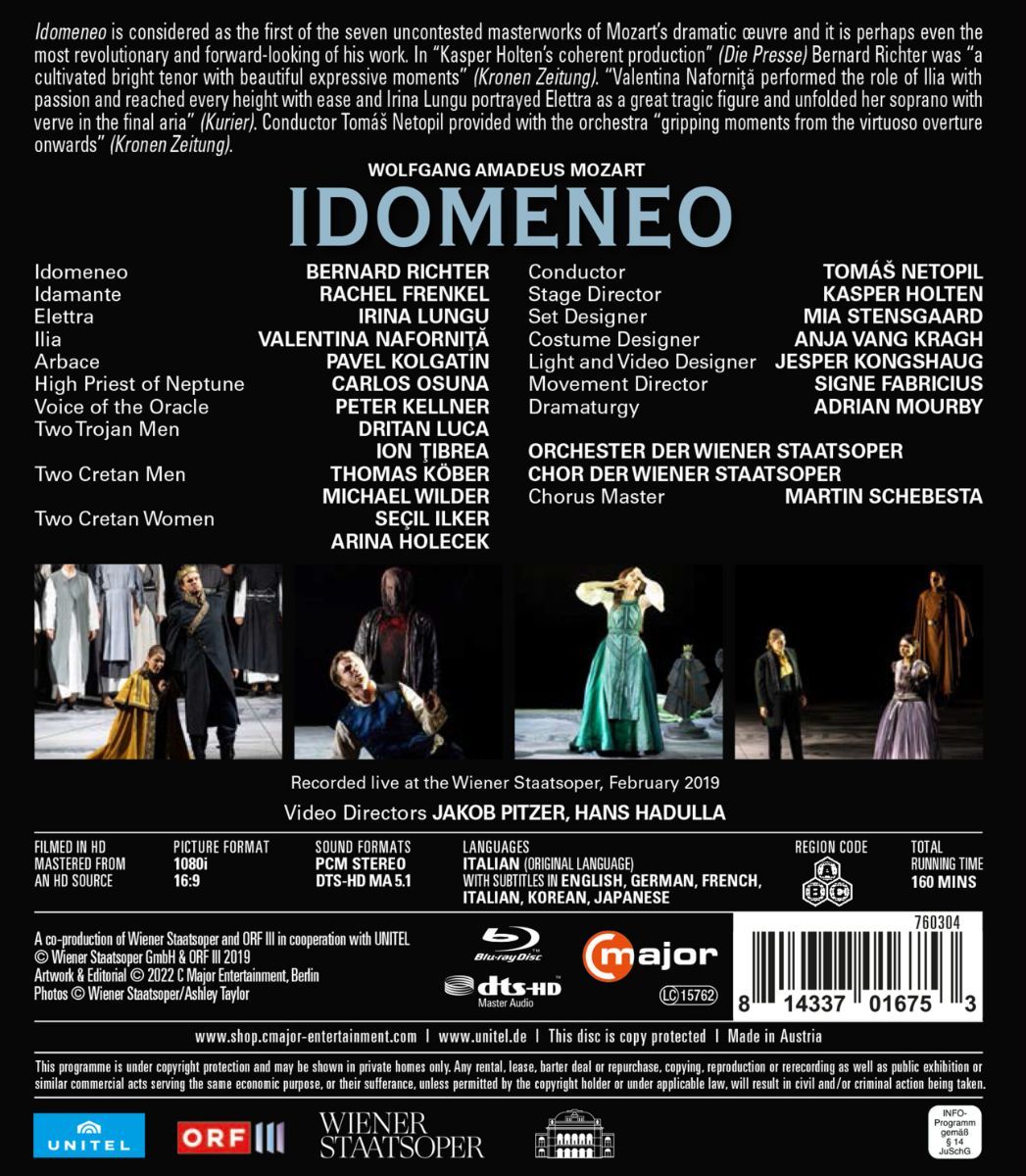 „Idomeneo“ gilt als erste völlig ausgereifte Oper Mozarts, bei der er mutig die üblichen Konventionen der Opera seria überwindet und sich von den Vorgängern und Vorbildern löst. Bemerkenswert sind auch die vielen Chöre der Oper. Im Februar 2019 brachte Kasper Holten das Werk auf die Bühne der Wiener Staatsoper. Besonders die Solistinnen und Solisten Bernard Richter, Irina Lungu und Valentina Naforni?? sowie der musikalische Leiter Tomáš Netopil wurden von der Presse hochgelobt und vom Publikum frenetisch gefeiert.