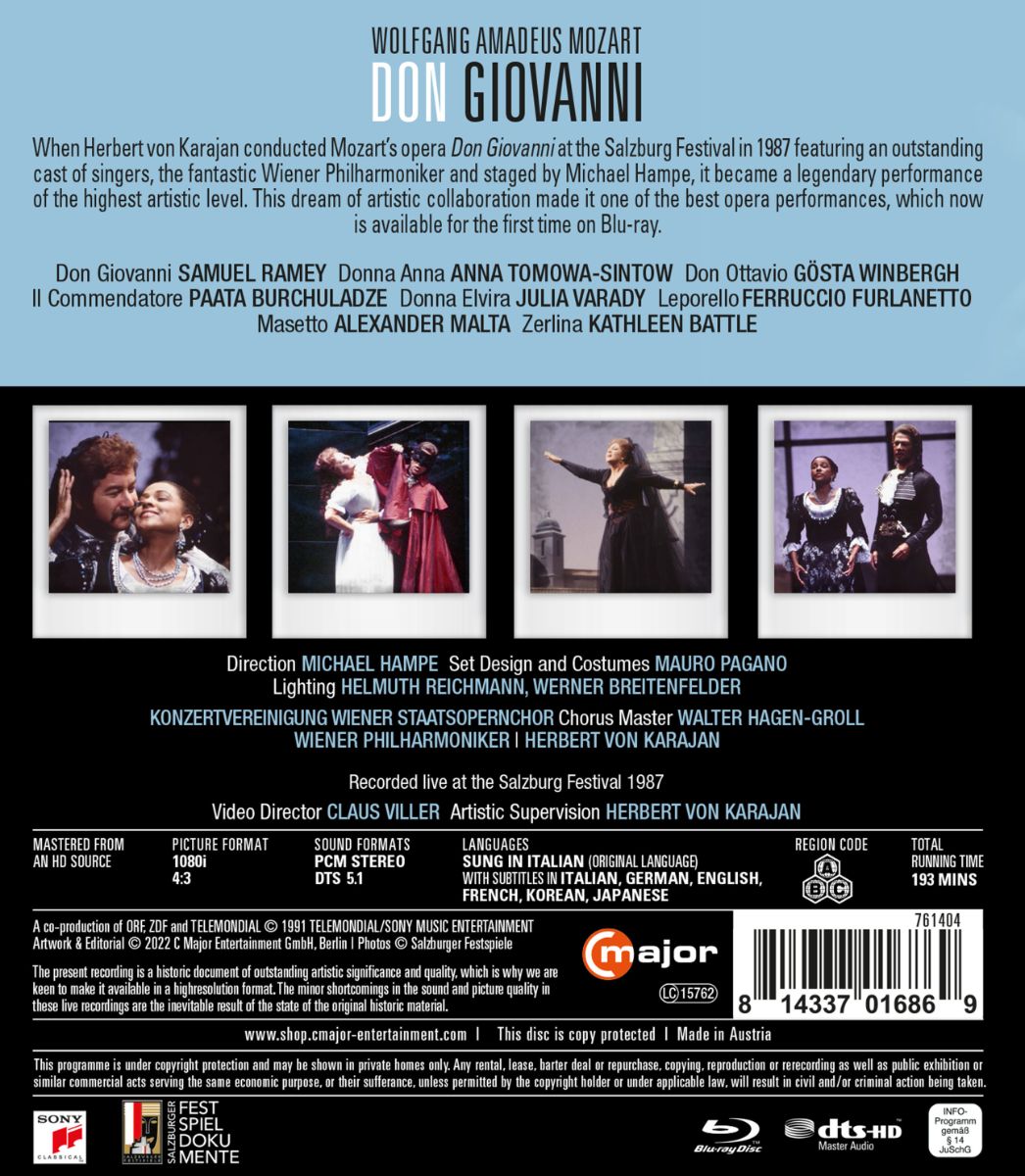 Als Herbert von Karajan 1987 bei den Salzburger Festspielen Mozarts Oper Don Giovanni dirigierte, wurde sie zu einer legendären Aufführung auf höchstem künstlerischen Niveau. Dazu trugen neben dem Dirigenten auch die Sängerinnen und Sängern, die fantastischen Wiener Philharmonikern und die Inszenierung von Michael Hampe bei. Dieser Traum von künstlerischer Zusammenarbeit machte sie zu einer der besten Opern Aufführungen, die nun zum ersten Mal auf Blu-ray erhältlich ist.