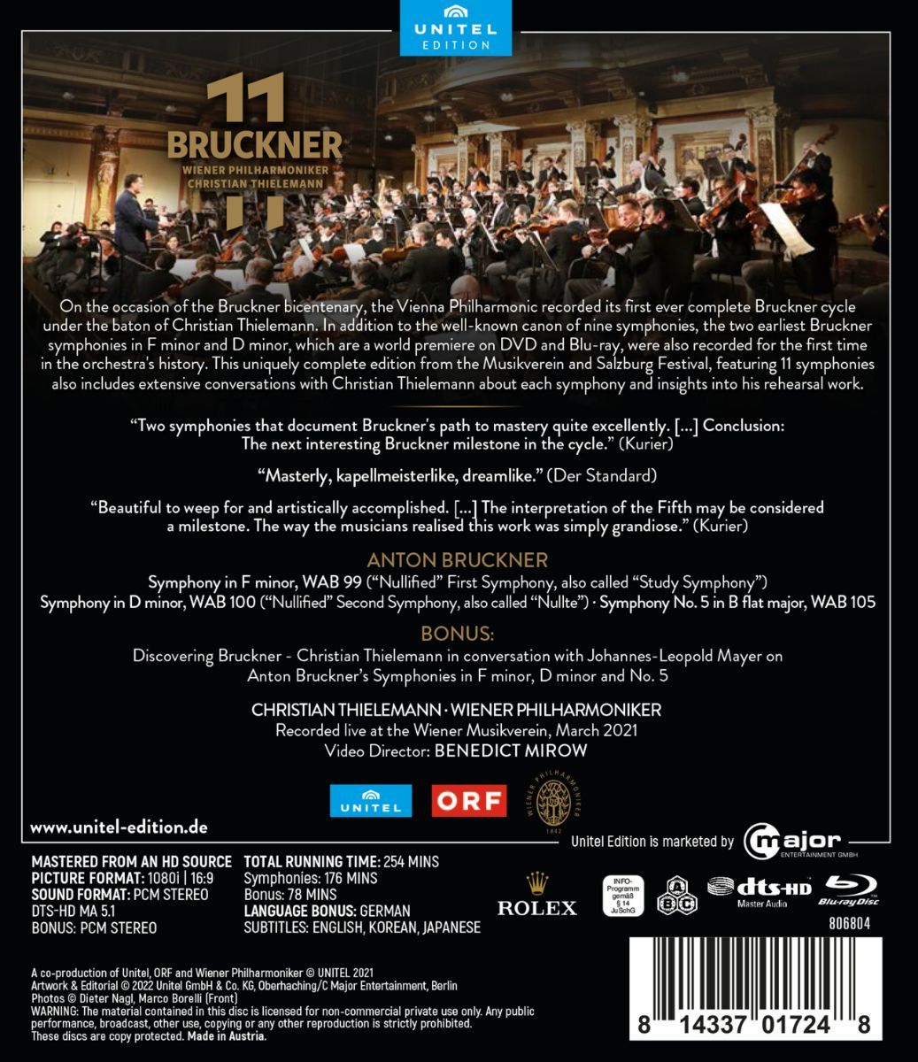 Anlässlich des herannahenden Bruckner-Jubiläums (2024) nehmen die Wiener Philharmoniker unter der Leitung von Christian Thielemann erstmals einen kompletten Bruckner-Zyklus auf. Neben dem bekannten Kanon von neun Sinfonien wurden erstmals in der Geschichte des Orchesters auch die beiden frühesten Bruckner-Sinfonien in f-Moll (die „Studiensinfonie“) und d-Moll (die „Nullte“) einstudiert. Die Edition („Bruckner 11“) wird neben der elf Sinfonien ausführliche Gespräche mit Christian Thielemann zu jeder Sinfonie und Einblicke in seine Probenarbeit enthalten.