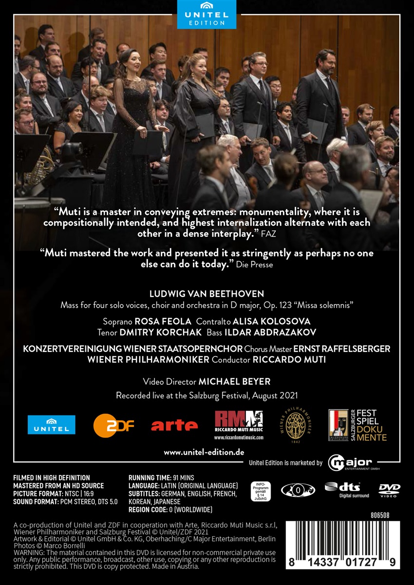Seit dem Tod Karajans im Jahr 1989 liegen die Konzerte der Wiener Philharmoniker bei den Salzburger Festspielen rund um Mariä Himmelfahrt (15. August) fest in den Händen von Riccardo Muti. Anlässlich seines 80. Geburtstages wagte sich Maestro Muti, ein Spezialist für Opern und großformatige Chorwerke, an die Interpretation von Beethovens gewaltiger „Missa solemnis“. Ein Werk, das er erstaunlicherweise noch nie zuvor dirigiert hatte.