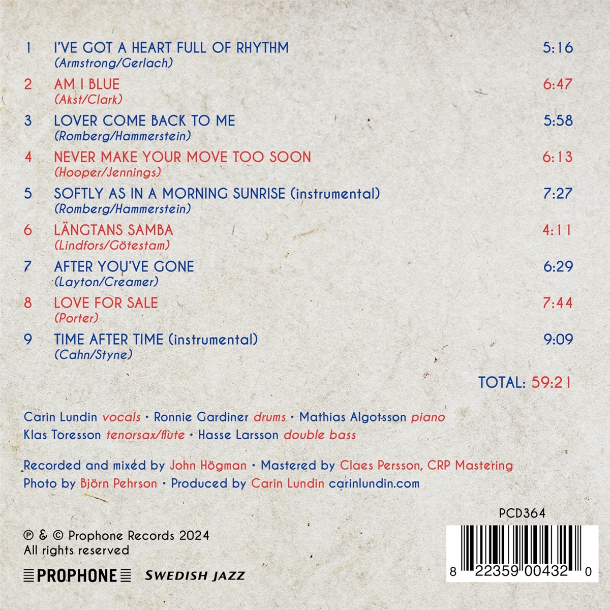 „Wir haben dieses Album live im Jazzklubb Syd in Ladan, Farsta, in einer kalten Winternacht im Januar 2024 aufgenommen, aber es dauerte nicht lange, bis die Temperatur in der kleinen Holzscheune anstieg. Die Wärme der Verbindung zwischen den Musikern, der Musik und dem Publikum war spürbar. Die Liebe zum Jazz - die fantastischen Melodien und Harmonien, die bedeutsamen Texte und die swingenden Rhythmen - brachte uns für eine Weile zusammen, und dieses Album ist das Ergebnis. Gewidmet allen Musikliebhabern, und vor allem unseren lieben Freunden und Familien. Haben Sie Freude daran!‟ (Carin Lundin)