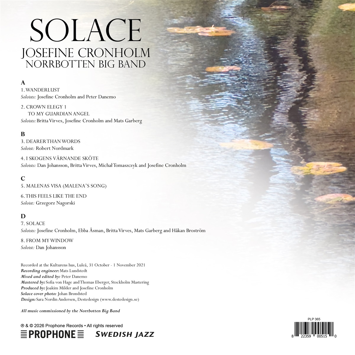 „Solace“ ist das Ergebnis einer Zusammenarbeit zwischen der Sängerin Josefine Cronholm und der Norrbotten Big Band. Das Projekt entstand anlässlich ihres 50. Geburtstags und vereint eigens in Auftrag gegebene Kompositionen von Künstlern und Künstlerinnen aus ihrem künstlerischen Umfeld. Die musikalische Leitung lag bei Joakim Milder. Die Werke spiegeln unterschiedliche kompositorische Handschriften und eröffnen vielfältige Perspektiven auf Cronholms künstlerisches Profil.
