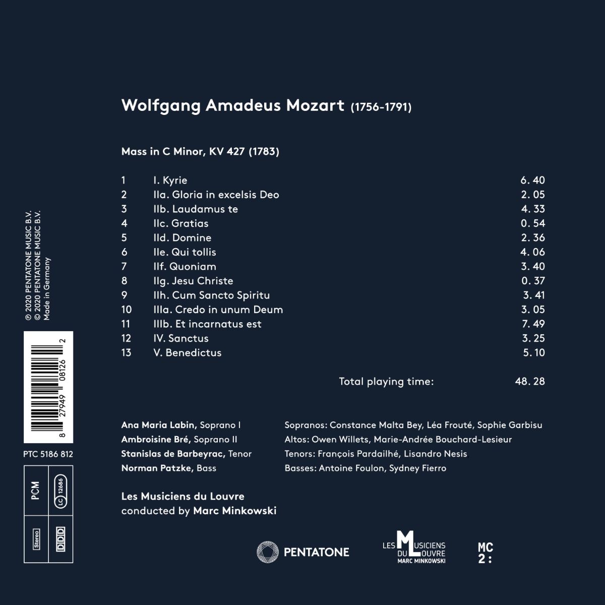 Trotz ihrer Unvollständigkeit gehört Mozarts c-Moll-Messe zum Kernrepertoire der Chormusik. Für diese Aufnahme wählte Minkowski Helmut Eders rekonstruierte und ergänzte Ausgabe von 1987. Sie erklingt in einem intimen, betont kammermusikalischen Rahmen mit seinem Stamm-Ensemble Les Musiciens du Louvre, einem kleinen Ripieno-Chor und vier erstklassigen Solisten: Ana Maria Labin, Ambroisine Bré, Stanislas de Barbeyrac und Norman Patzke.