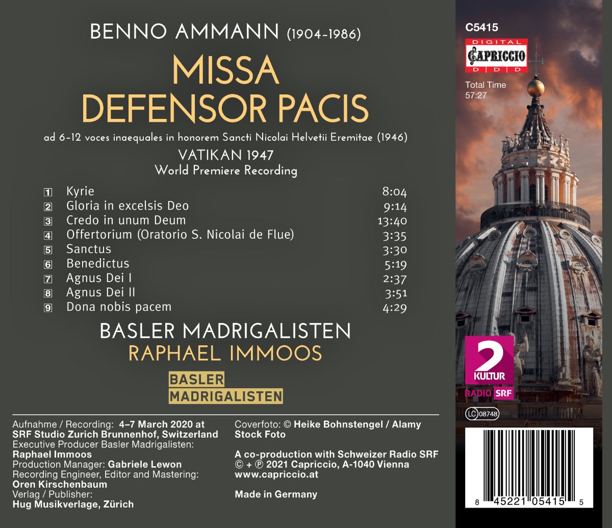 Die Werke des Schweizer Komponisten Benno Ammann zeugen von einem deutlichen Einfluss des Impressionismus bis hin zur freien Tonalität und sind keiner typischen, stilistischen Schule zuzuordnen. Die Messe „Missa Defensor Pacis“ wurde von ihm eigens für die Heiligsprechung des Schweizer Nationalheiligen Niklaus von Flüe 1946 im Vatikan komponiert.