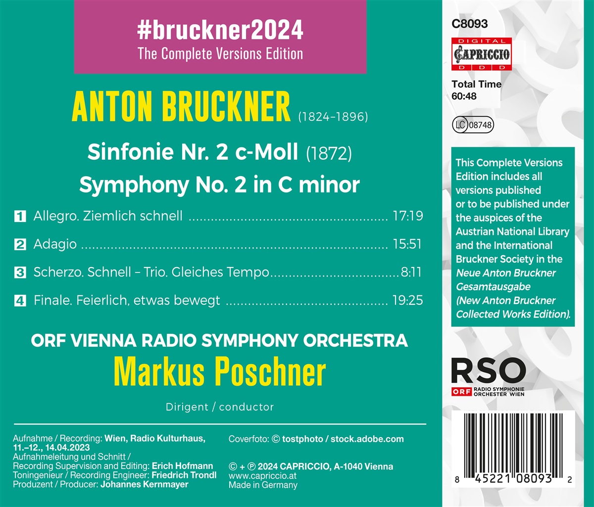 Bruckners Sinfonie Nr. 2 in c-Moll ist in der fast ausschließlich aufgeführten Fassung von 1877 ein Stiefkind unter seinen 11 Sinfonien, in der Originalfassung von 1872 wird sie so gut wie nie aufgeführt. Das ist nicht in erster Linie objektiven Verbesserungen in der Zweitfassung geschuldet, sondern eher Vorurteilen und einer unglücklichen Rezeptionsgeschichte, in der selbst arrivierte Bruckner-Experten die Frühwerke abwerten. Dabei lohnt es sich, in die ungeglätteten, rohen Urzustände der frühen Brucknerschen Symphonik hineinzuhören: ein Genie im Entstehen, sozusagen. Markus Poschner und das RSO Wien haben sich dem verschmähten Werk respektvoll und vorurteilsfrei angenommen.