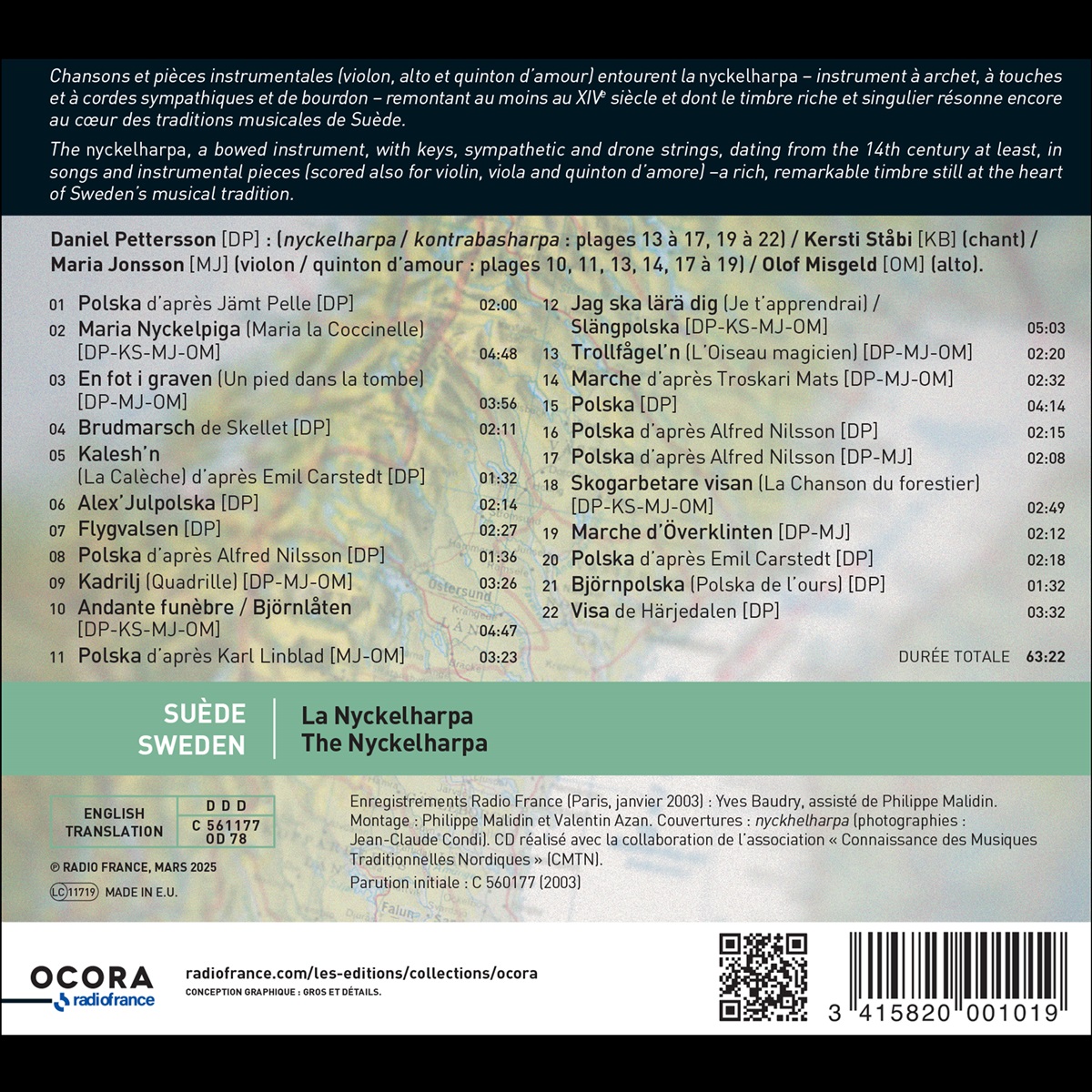Die Nyckelharpa, ein Streichinstrument mit Klappen, Resonanz- und Bordunsaiten, das seit dem 14. Jahrhundert in Liedern und Instrumentalstücken (auch für Geige, Bratsche und Quinton d'amore) erklingt, verfügt über eine reiche, bemerkenswerte Klangfarbe, die noch immer im Mittelpunkt der schwedischen Musiktradition steht.