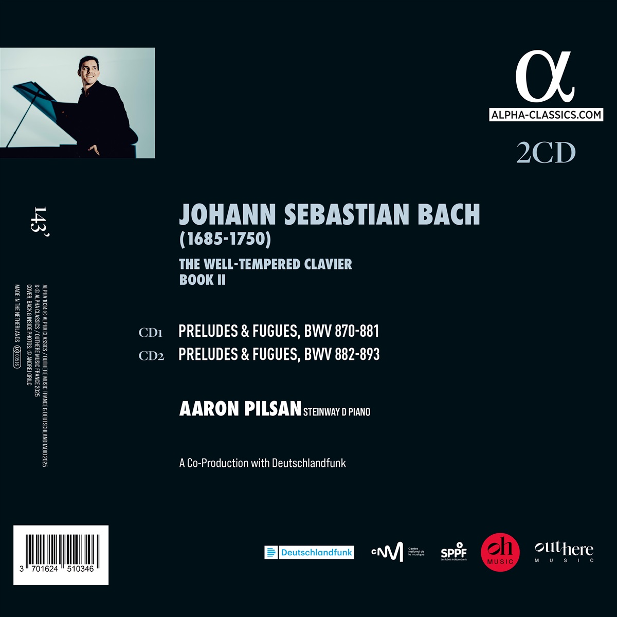 Aaron Pilsan vervollständigt seine Einspielung des Wohltemperierten Klaviers von Johann Sebastian Bach, fünf Jahre nach Erscheinen des ersten Teils, der von den Kritikern für seine leidenschaftliche, präzise und lebendige Interpretation gelobt wurde. Zwischen der Entstehung der beiden Teile liegen zwanzig Jahre, und obwohl der erste Teil bekannter ist, „ist das zweite Buch verspielter, aber auch vollkommener. Es geht kompositorisch weiter und zeigt auch außergewöhnliche harmonische Wendungen mit originellen und oft sehr ungewöhnlichen Akkorden. Das beste Beispiel für den Unterschied zwischen den beiden Büchern ist die Fuge in dis-Moll im zweiten Buch, ein Stück, dessen Kühnheit und harmonische Originalität mich immer wieder in Erstaunen versetzt“, sagt der österreichische Pianist, der erneut seine Faszination für Johann Sebastian Bach unter Beweis stellt: „Was ich an Bachs Musik am meisten liebe, ist, dass er alles ausdrückt, was unser Leben ausmacht, aber in perfekter Ordnung."