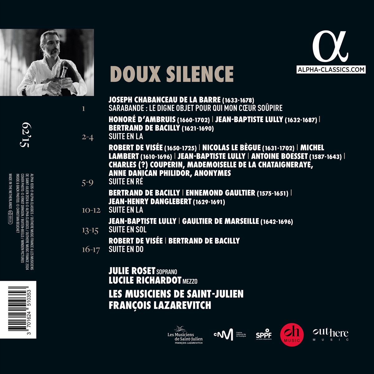 „Die Air de Cour begleitet mich fast so lange, wie ich Flöte spiele.... Für mich ist sie eine der schönsten Schöpfungen der französischen Kunst. Ich habe diese Airs aus der zweiten Hälfte des 17. Jahrhunderts zusammengestellt, um die mit „Et la fleur vole“ (frühes 17. Jahrhundert) und „À l'ombre d'un ormeau“ (frühes 18. Jahrhundert) begonnene Beschäftigung zu vervollständigen", sagt François Lazarevitch in der Einleitung zu dieser neuen Veröffentlichung. „Ich bin besonders daran interessiert, die Klangqualitäten und den Atem von Stimme und Flöte zu kombinieren.“ Liebeslieder, Tanzmelodien und Lieder über pastorale Themen (Brunettes) folgen einander in einem Programm, das zugleich bewegend und geistreich ist.