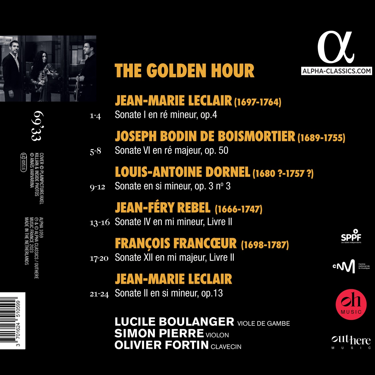 Wir befinden uns in Frankreich in einer schwierigen Zeit der Regentschaft, am politischen Scheideweg zwischen Ludwig XIV. und Ludwig XV. Die Viola da Gamba erlebte ihre letzten Stunden des Ruhms in Frankreich, während die Violine begann, in den Mittelpunkt zu rücken. Die Goldene Stunde, die sich im Allgemeinen auf die Zeit nach dem Sonnenaufgang und vor dem Sonnenuntergang bezieht, wenn sich das Licht ändert, erinnert hier an diese Jahre der Konvergenz, ja sogar der Konfrontation zwischen einer Viola da Gamba in der Dämmerung ihres Lebens und einer Violine in der Morgendämmerung ihres solistischen Schicksals.