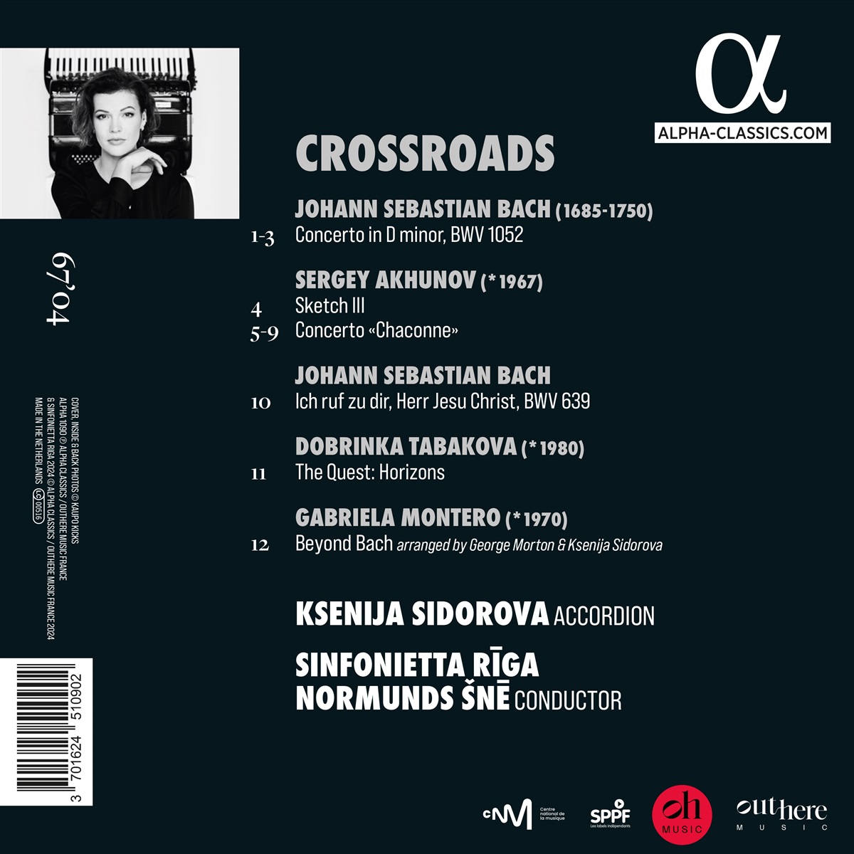 Nach ihrem Album „Piazzolla Reflections“ (ALPHA664) widmet die lettische Akkordeonistin Ksenija Sidorova diese neue Aufnahme Bach und von seiner Musik beeinflussten Kompositionen. Sie beginnt mit dem berühmten Konzert BWV 1052, das so viele Bearbeitungen für Klavier, Violine und sogar Heavy-Metal-Gitarre inspiriert hat, „dass ich nicht glaube, dass eine Version für ein Instrument mit zwei Tastaturen jemanden überraschen wird“, sagt Ksenija. Auf dem Programm stehen außerdem Sergey Akhunov mit einem Werk, das von Bachs Chaconne BWV1004 inspiriert ist, „Beyond Bach“ von Gabriela Montero, der venezolanischen Pianistin und Komponistin, die für ihre Improvisationen berühmt ist; und „Horizons“ von der englisch-bulgarischen Komponistin Dobrinka Tabakova. Abgerundet wird das Programm durch Bachs Choralvorspiel „Ich ruf zu dir“, das Ksenija seit ihrer Kindheit begleitet: „Ich finde, dieses Orgelstück funktioniert besonders gut auf dem Akkordeon. Beide Instrumente verwenden Blasebälge, aber das Akkordeon bietet einen viel flexibleren Dynamikbereich. Man kann die Musik richtig atmen lassen.'