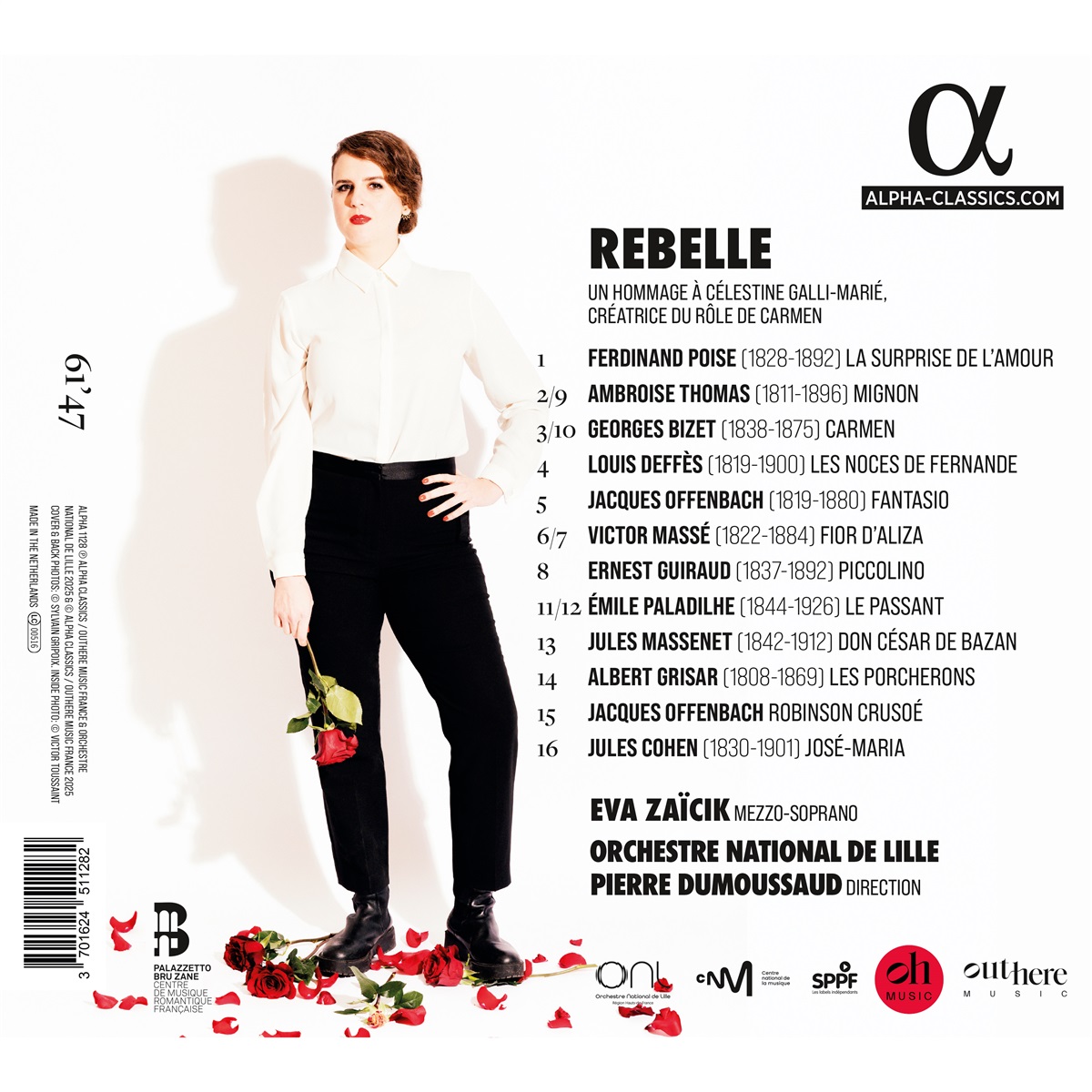 Anlässlich des 150. Todestages von Bizet und der Uraufführung seiner äußerst beliebten Carmen würdigen Alpha Classics und Le Palazzetto Bru Zane die Sängerin Célestine Galli-Marié, die von 1837-1905 lebte und die die Titelrolle der berühmten Bizet-Oper zum Erfolg brachte. Sie war eine bemerkenswerte Schauspielerin und Sängerin, die in fünfzehn Jahren sechzehn Rollen an der Opéra-Comique verkörperte, darunter die ikonische Mignon von Ambroise Thomas und Jacques Offenbachs Fantasio. Die französische Mezzosopranistin Eva Zaïcik zeigt sich hocherfreut, die Rollen einer so schillernden Künstlerin zu übernehmen: „Célestine verkörperte eine bestimmte Vorstellung von künstlerischer und weiblicher Rebellion. Ihre Stimme, ihr Charisma und ihr einzigartiger theatralischer Ansatz erweckten Figuren zum Leben, die frei und komplex waren und oft mit den Normen ihrer Zeit kämpften.“ Unterstützt von Pierre Dumoussaud und dem Orchestre National de Lille verkörpert Eva Zaïcik nicht nur brillant Figuren von Bizet, Massenet, Offenbach und Thomas, sondern haucht auch Arien von Paladilhe, Poise, Deffès, Massé, Guiraud, Cohen und Grisar neues Leben ein. Ganz im Sinne der großen Künstlerin des 19. Jahrhunderts.