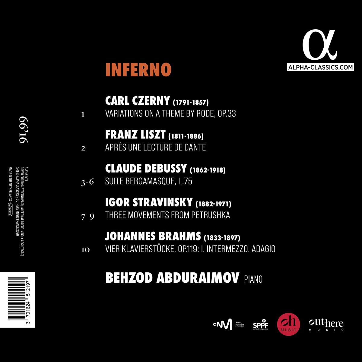 Behzod Abduraimovs Interpretationen verbinden große musikalische Tiefe mit phänomenaler Technik: „Er besitzt eine magische Anschlagskultur“, schrieb The Times. Dieses Recital ist ein weiterer eindrucksvoller Beleg für seine vielseitigen Fähigkeiten. Es beginnt mit Variationen von Carl Czerny, einem Schüler Beethovens und Lehrer Liszts. Es folgt das berühmte Après une lecture de Dante – dessen Titel einem Gedicht Victor Hugos entlehnt ist –, das Liszts Années de pèlerinage: Italie (1846–1849) repräsentiert.