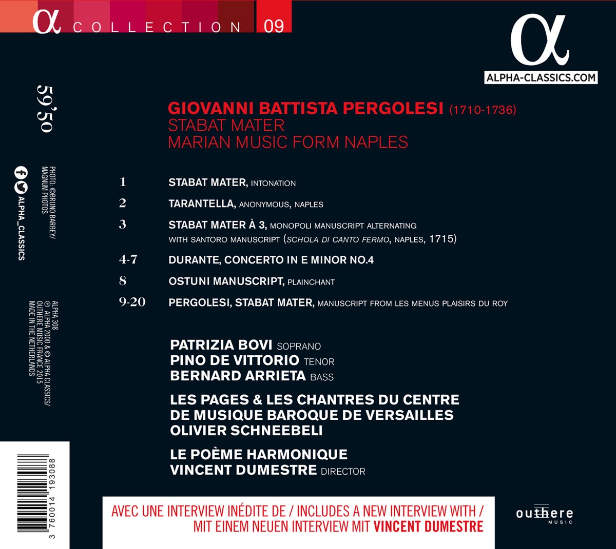 Arrieta, Bernard / Bovi, Patrizia / Dumestre, Vincent / Guillon, Damien / Le Levreur, Bruno / Maigrot, Florent / Meier, Arno / Pages et Chantres de la Chapelle / Planinsek, Marie / Le Poème Harmonique / Vittorio, Pino de
