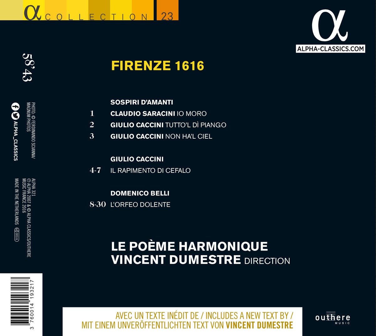 Bucher, Aurore / Druet, Isabelle / Dumestre, Vincent / Elsacker, Jan van / Marzorati, Arnaud / Padaut, Catherine / Le Poème Harmonique / Poul, Camille / Roche, Philippe