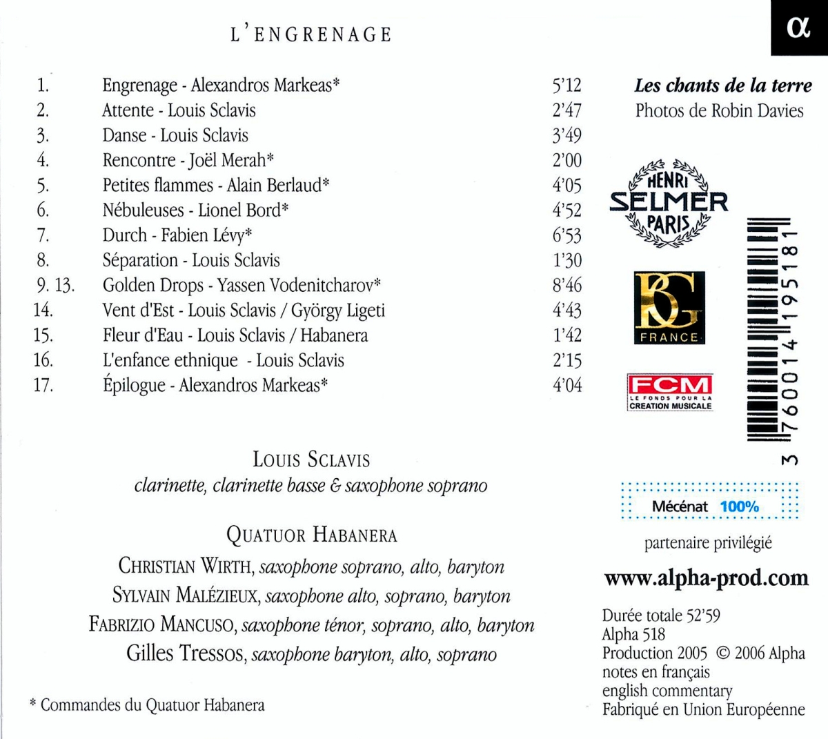 Quatuor Habanera / Sclavis, Louis