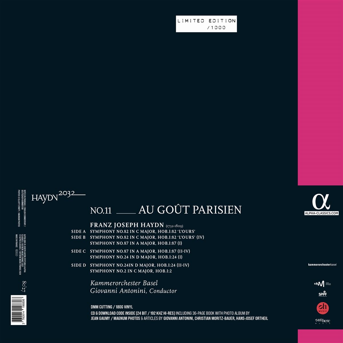 Der elfte Teil des symphonischen Gesamtzyklus Haydn2032 stellt Paris in den Mittelpunkt: ‚Man sieht und bewundert von Tag zu Tag mehr die Schöpfungen dieses großen Genies, das es so gut versteht, in jedem seiner Werke aus einem einzigen Thema reiche und vielfältige Entwicklungen zu schöpfen‘, schrieb der Mercure de France im April 1788 und fügte hinzu, Haydn sei ‚ganz anders als jene sterilen Komponisten, die sich ständig von einer Idee zur nächsten hangeln...‘. Die hier vorgestellten Sinfonien sind die Nr. 2 (die erste, die in Frankreich veröffentlicht wurde), die Nr. 24 (die erste, die in Frankreich aufgeführt wurde) und die so genannten "Pariser" Sinfonien Nr. 87 und Nr. 82 "L'Ours" mit ihren Anspielungen auf die Jahrmarktsatmosphäre und ihrem berühmten kontrapunktischen Finale. Diese limitierte und nummerierte Edition enthält zwei Vinyl-LPs, ein Fotoalbum von Jean Gaumy (Magnum Photos) und einen wunderbaren, bisher unveröffentlichten Text des Schriftstellers Hanns-Josef Ortheil mit dem Titel "Wie ich über Joseph Haydn sprechen könnte".