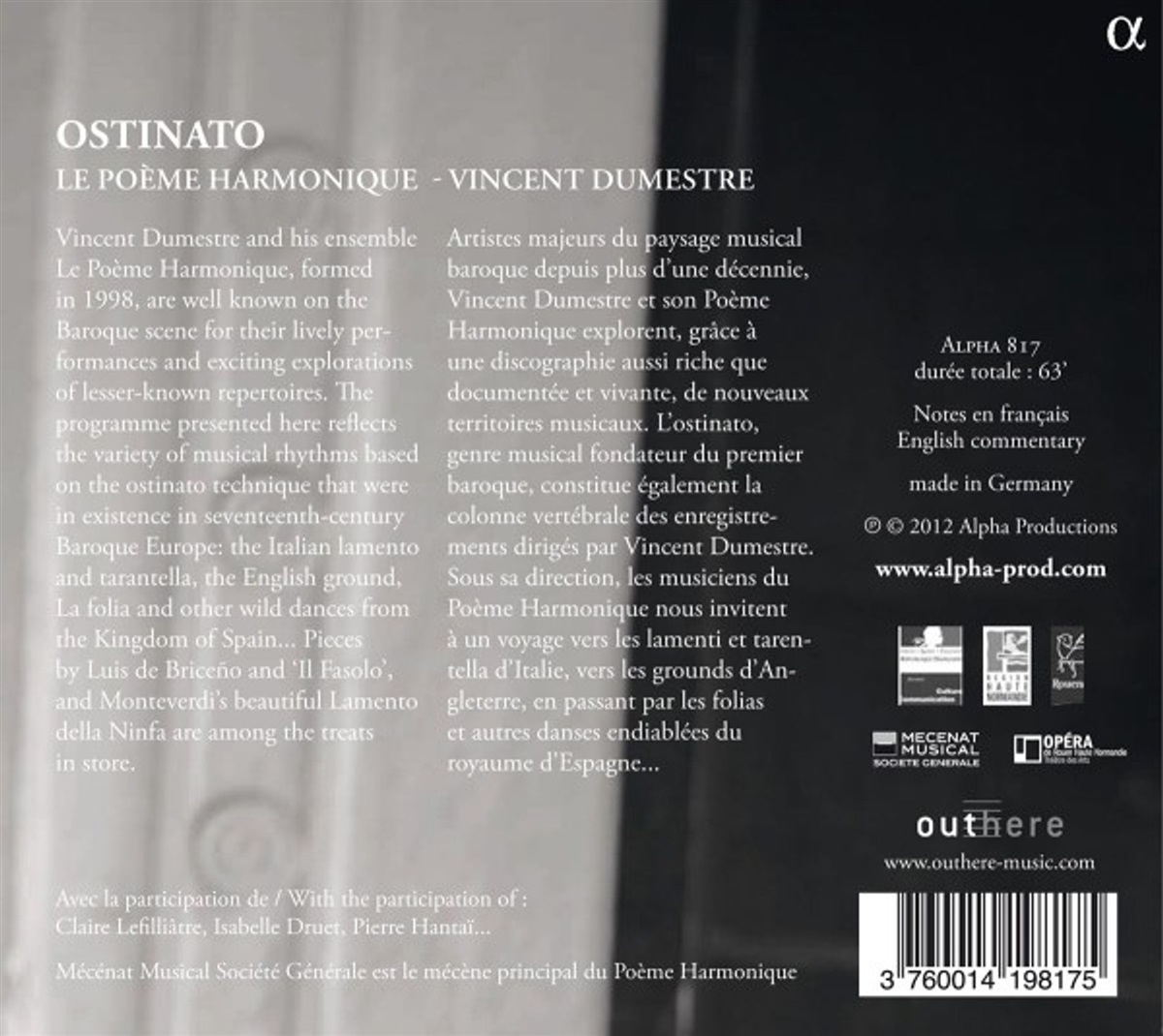 Arnould, Benoit / Druet, Isabelle / Dumestre, Vincent / Elsacker, Jan van / Goubioud, Serge / Lefilliâtre, Claire / Perrot, Benjamin / Le Poème Harmonique