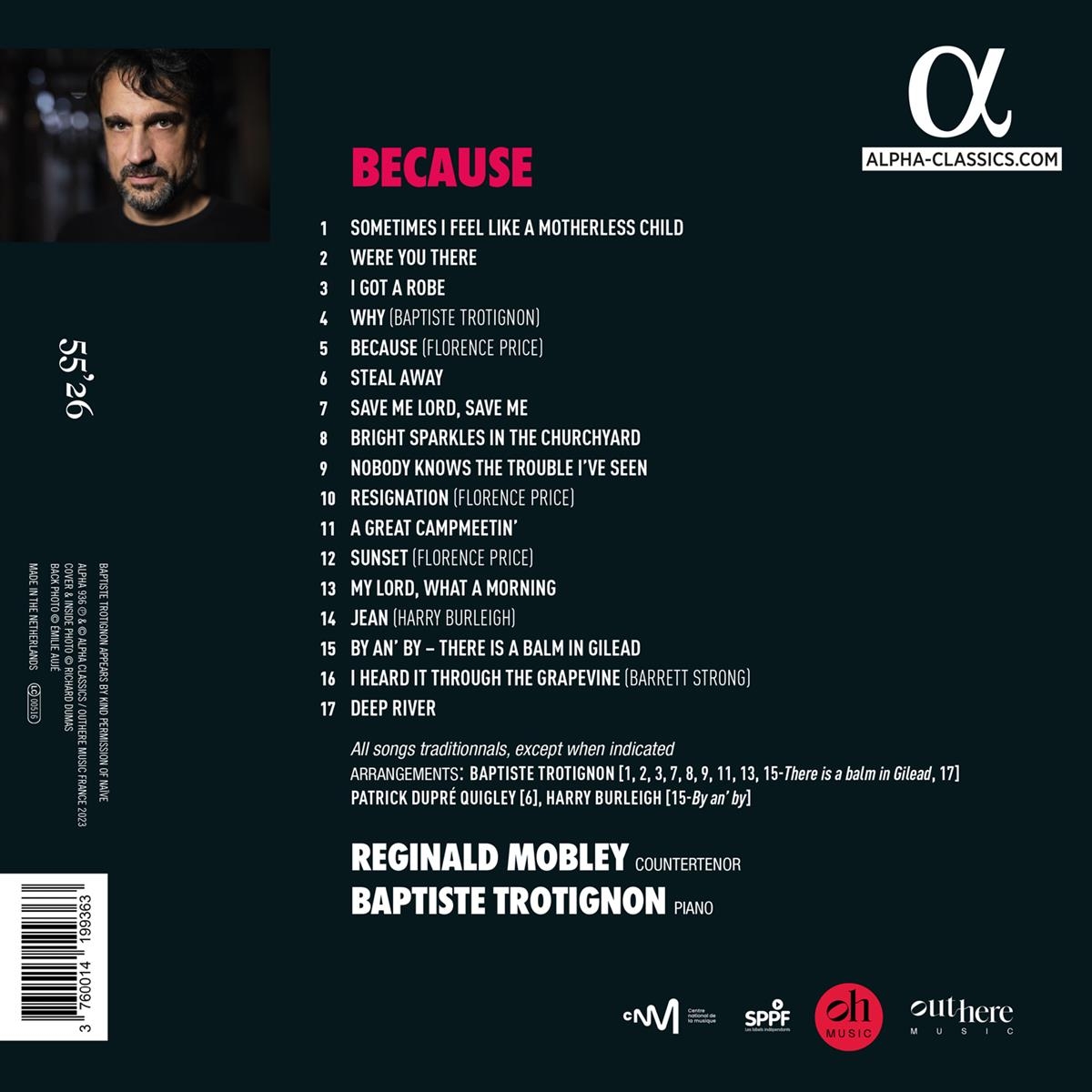 Während der langen Zeit, in der Bach, Mozart und Beethoven den musikalischen Kanon Westeuropas schufen, erklangen in den Kolonien auf der anderen Seite des Atlantiks die Lieder afrikanischer Sklaven, die Schmerz und Sehnsucht, aber auch Freude und den Wunsch nach Freiheit zum Ausdruck brachten. Der amerikanische Countertenor Reginald Mobley und der französische Pianist Baptiste Trotignon haben ihre Talente und ihre Sensibilität vereint, um diese Spirituals und die Musik schwarzer Komponisten wie Harry T. Burleigh (1866-1949) und Florence Price (1887-1953) zu zelebrieren. Die Melodie „Because“, die Florence Price auf ein Gedicht von Paul Laurence Dunbar komponierte, inspirierte den Titel des Albums: Because I had loved so hard (...) Because I had loved so vainly... Warum dieses Album? Weil...