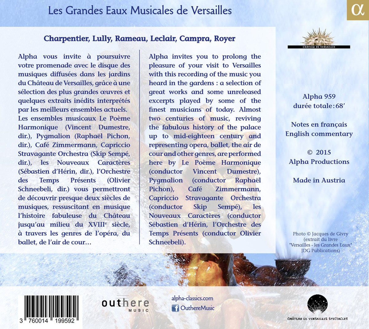 Ancely, Virgile / Anorga, Solange / Arnould, Benoit / Aros, Erwin / Arquez, Gaelle / Baráth, Emőke / Beaudette, Anne-Marie / Brahim-Djelloul, Amel / Bucher, Aurore / Buet, Alain / Capella Cracoviensis / Capriccio Stravagante / Centre de Musique Baroque de Versailles Choir / Champion, Romain / Collobert, Laurent / Cummings, Brian / Dahlin, Anders J. / Decaudaveine, Sophie / De Negri, Emmanuelle / Devieilhe, Sabine / d'Hérin, Sébastien / Druet, Isabelle / Dubrovitch, Nicole / Dumestre, Vincent / Les Enfants D'Apollon / Favier, Marie / Fernandes, João / Fichet, Olivier / Frisch, Céline / Gautier, Christophe / Greenberg, Michael / Laurens, Guillemette / Martin-Bonnet, Eric / Mechelen, Reinoud van / Les Nouveaux Caractères / Parat, Edwige / Pichon, Raphaël / Le Poème Harmonique / Pygmalion / Ravoux, Jean-Yves / Renhold, Bruno / Richter, Bernard / Santon, Chantal / Schneebeli, Olivier / Sempé, Skip / Studio chorus / Les Temps Presents / Thompson, Jeffrey / Willenbrock, Paul