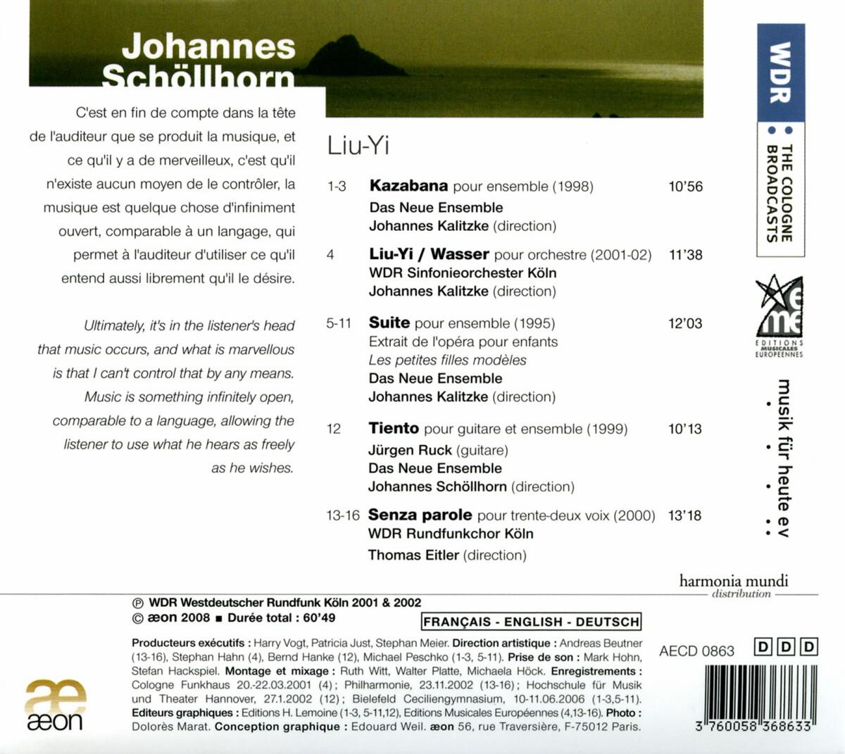 Eitler, Thomas / Kalitzke, Johannes / Das Neue Ensemble / Ruck, Jürgen / Schöllhorn, Johannes / WDR Rundfunkchor Köln / WDR Sinfonieorchester