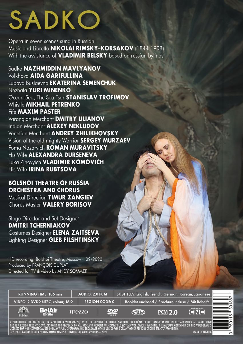 „Sadko“ ist ein entscheidendes Werk in der ästhetischen Entwicklung Nikolai Rimski-Korsakows. Wie in vielen anderen seiner Opern schöpft der Komponist seine gestalterische Inspiration aus russischen Volks- und Märchengeschichten, aber auch aus alten musikalischen und poetischen Formen. Das Ergebnis ist dennoch erstaunlich modern. Dmitri Tcherniakov, der derzeit wohl wichtigste Regisseur russischer Opern, entwirft eine faszinierende Inszenierung auf der berühmten Bühne des Bolschoi-Theaters, die die Mehrdeutigkeit dieser paradoxen Oper zwischen Vergangenheit und Gegenwart, Fantasie und Realität perfekt unterstreicht.