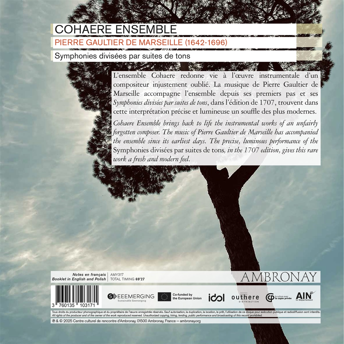 Das Cohaere Ensemble lässt die Instrumentalwerke eines zu Unrecht vergessenen Komponisten wieder aufleben. Die Musik von Pierre Gaultier de Marseille hat das Ensemble seit seinen Anfängen begleitet. Die präzise und lebendige Aufführung der „Symphonies divisées par suites de tons" in der Ausgabe von 1707 verleiht diesem seltenen Werk eine frische und moderne Note.