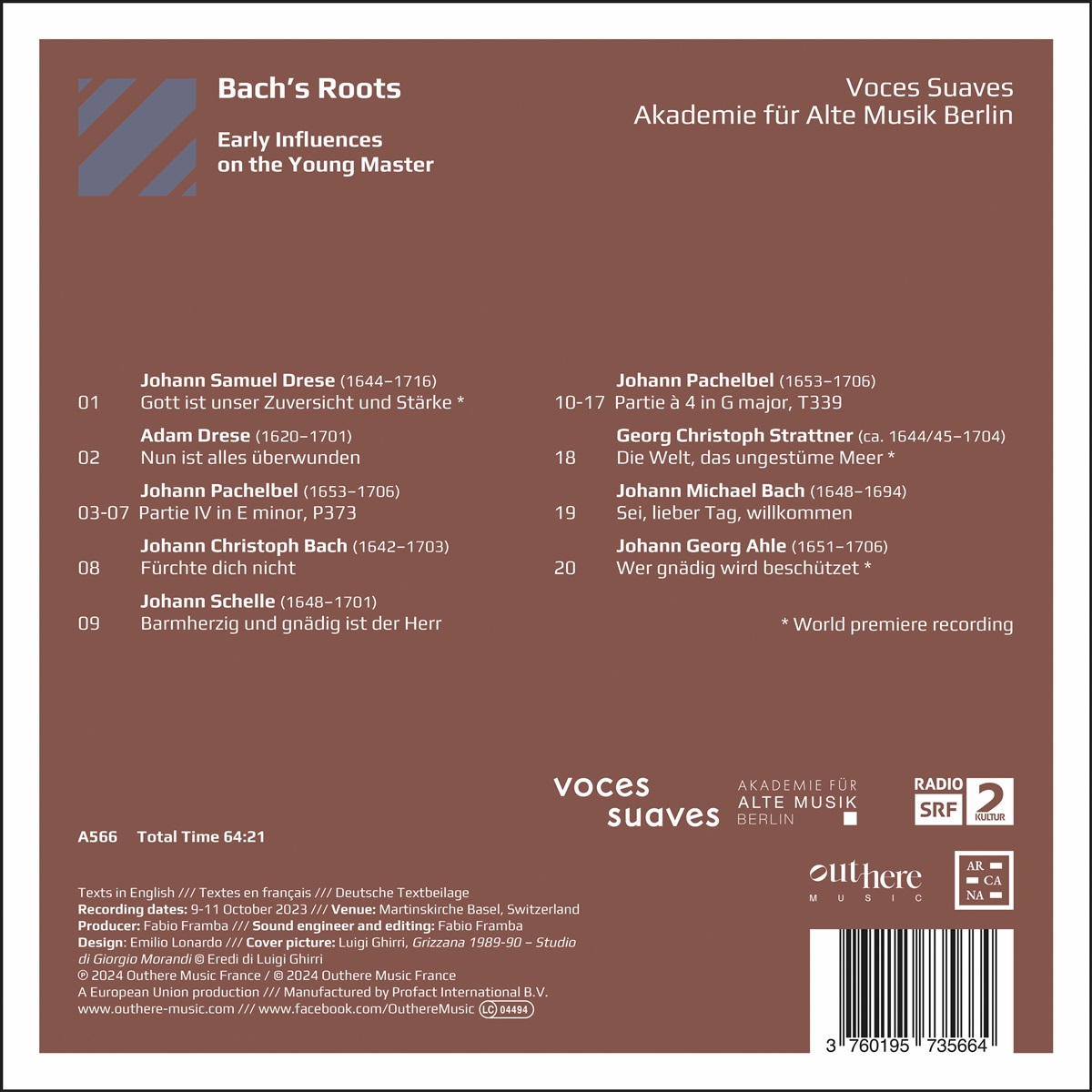 Das erste gemeinsame Projekt der Akademie für Alte Musik Berlin und des Basler Vokalensembles Voces Suaves widmet sich dem musikalischen Milieu, in das Johann Sebastian Bach hineingeboren wurde, und insbesondere jenen Komponisten, die nachweislich Einfluss auf das Schaffen des späteren Leipziger Thomaskantors hatten. Neben Stücken aus dem Altbachischen Archiv sind auf dem Album geistliche Konzerte und frühe Kantaten von Bachs Vorgängern und Vorgesetzten aus Arnstadt, Mühlhausen, Weimar und Leipzig zu hören und damit eindrucksvolle Belege für den hohen Entwicklungsstand der damaligen Musiktradition in Mitteldeutschland. Obwohl uns viele der Komponisten heute völlig unbekannt sind, geben ihre Werke, von denen einige hier zum ersten Mal eingespielt wurden, einen faszinierenden Einblick in die Musiksprache des späten 17. Jahrhunderts in Deutschland mit ihrem inspirierenden Reichtum an Farben und Formen.
