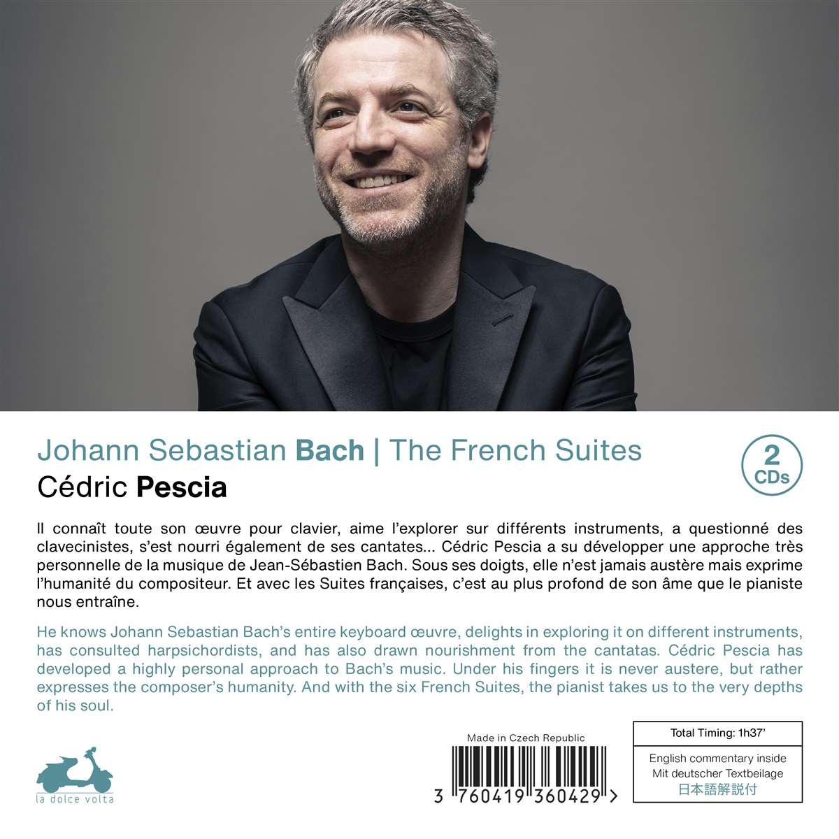 Er kennt das gesamte Tasteninstrumentenwerk von Johann Sebastian Bach (1685–1750) auswendig, erforscht es mit Freude auf unterschiedlichen Instrumenten, hat sich mit Cembalisten ausgetauscht und sich auch von den Kantaten inspirieren lassen. So hat Cédric Pescia einen ganz eigenen, sehr persönlichen Zugang zu Bachs Musik entwickelt. Unter seinen Händen klingt sie niemals streng oder asketisch, sondern bringt stets die menschliche Wärme des Komponisten zum Vorschein. Und mit den sechs Französischen Suiten führt uns der Pianist geradezu in die tiefsten Schichten seiner Seele.