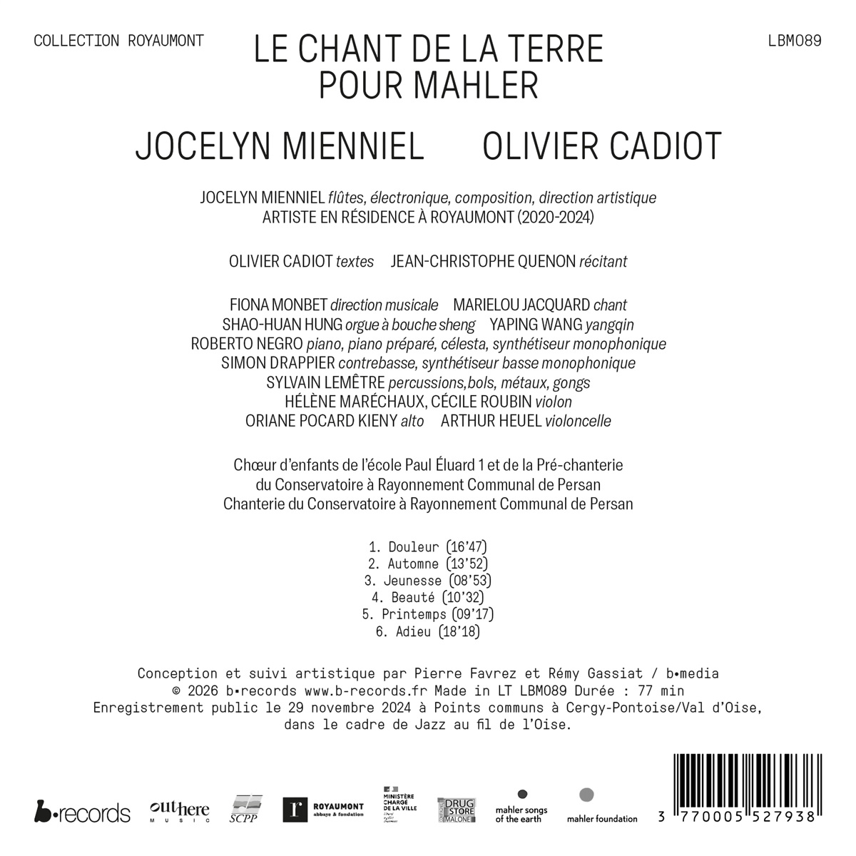 Chanterie du Conservatoire à Rayonnement Communal de Persan / Chœurs d’enfants de l’École Paul Éluard de Persan / Drappier, Simon / Heuel, Arthur / Hung, Shao-Huan / Jacquard, Marielou / Kieny, Oriane Pocard / Lemêtre, Sylvain / Maréchaux, Hélène / Mienniel, Jocelyn / Monbet, Fiona / Negro, Roberto / Quenon, Jean-Christophe / Roubin, Cécile / Wang, Yaping