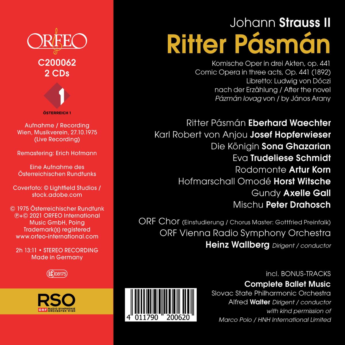 Der vorliegende Live-Mitschnitt entstand im Musikverein in Wien am 27. Oktober 1975, mit Heinz Wallberg am Pult des Radio-Symphonieorchester Wien, Eberhard Waechter als Ritter Pásmán, Sona Ghazarian als Königin, Josef Hopfwieser als König von Ungarn und Trudeliese Schmidt als Eva in den Hauptrollen.