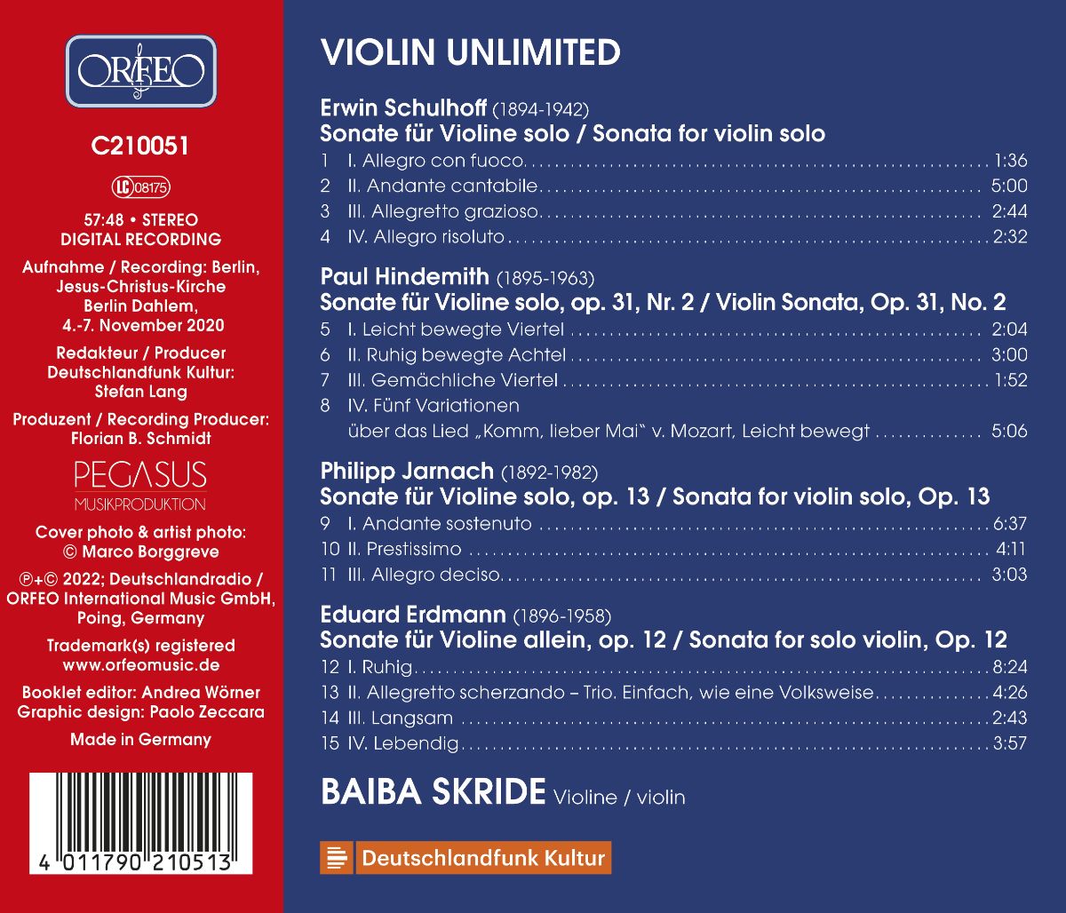 Obwohl (oder gerade weil?) Bachs Sonaten und Partiten für Violine solo als maßstäblich für technisches Können und innere Reife eines Geigers galten und gelten, geriet historisch betrachtet das Komponieren für die unbegleitete Geige in der nachfolgenden Klassik und Romantik völlig in den Hintergrund. Erst zu Beginn des 20. Jahrhundert wurde die Tradition wieder aufgegriffen. Zu einer regelrechten Renaissance der Solosonate kam es in den 1920er Jahren, in denen alle vier hier von Baiba Skride dargebotenen Sonaten von Schulhoff, Hindemith, Jarnach und Erdmann entstanden.
