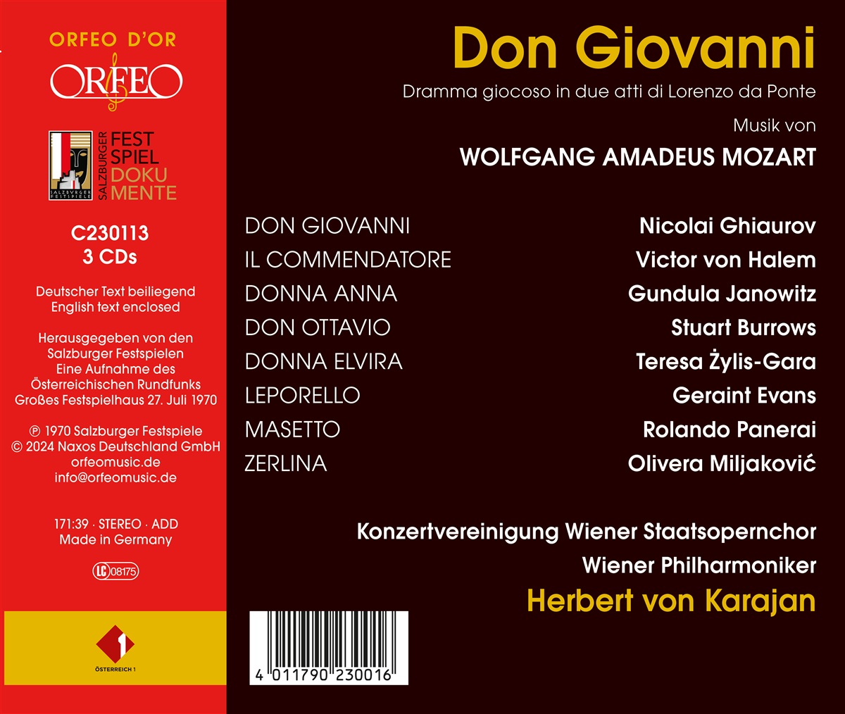 Mozart: Don Giovanni [Salzburger Festspiele, Großes Festspielhaus, Salzburg 1970, Liveaufnahme]