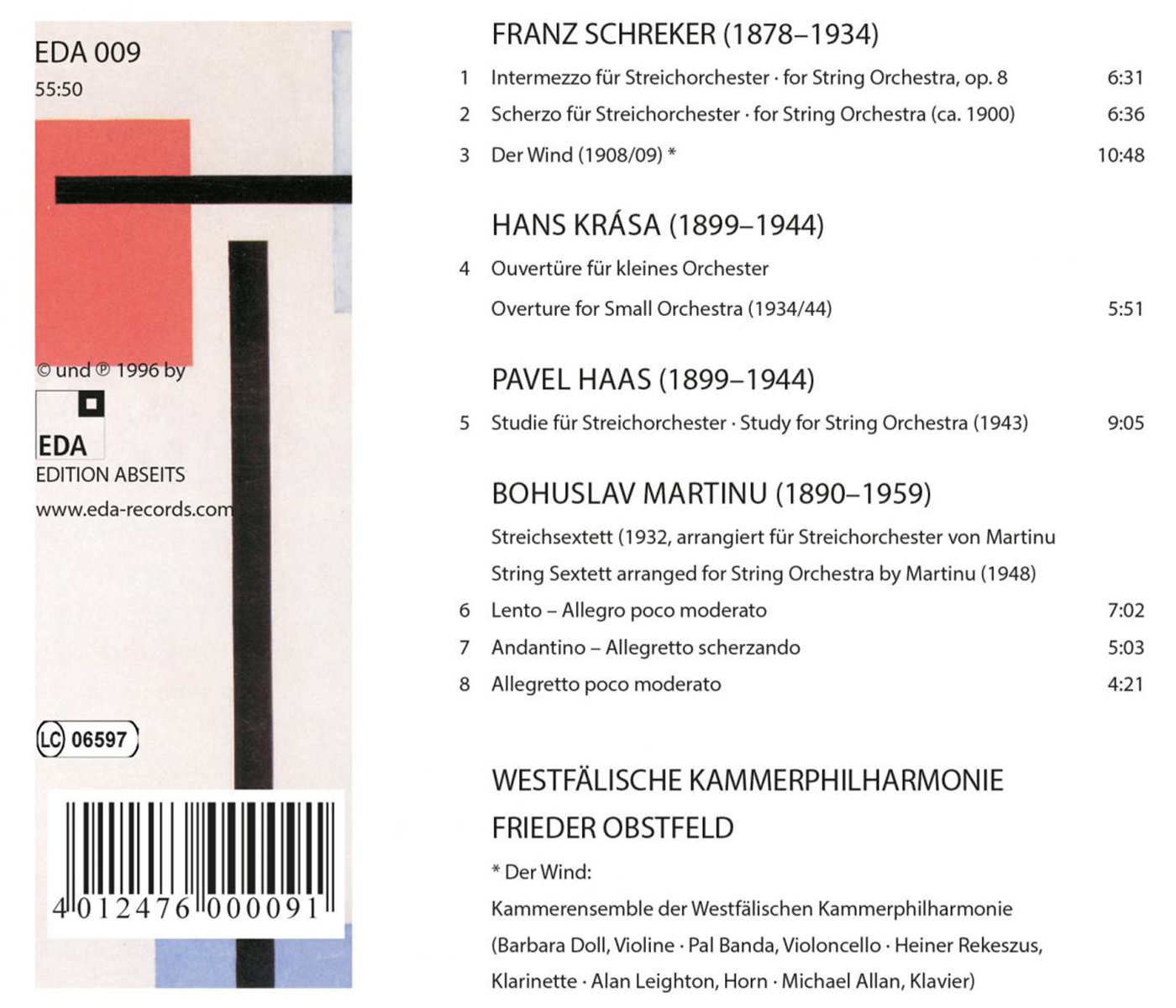 Werke von Franz Schreker, Hans Krasa, Pavel Haas und Bohuslav Martinů