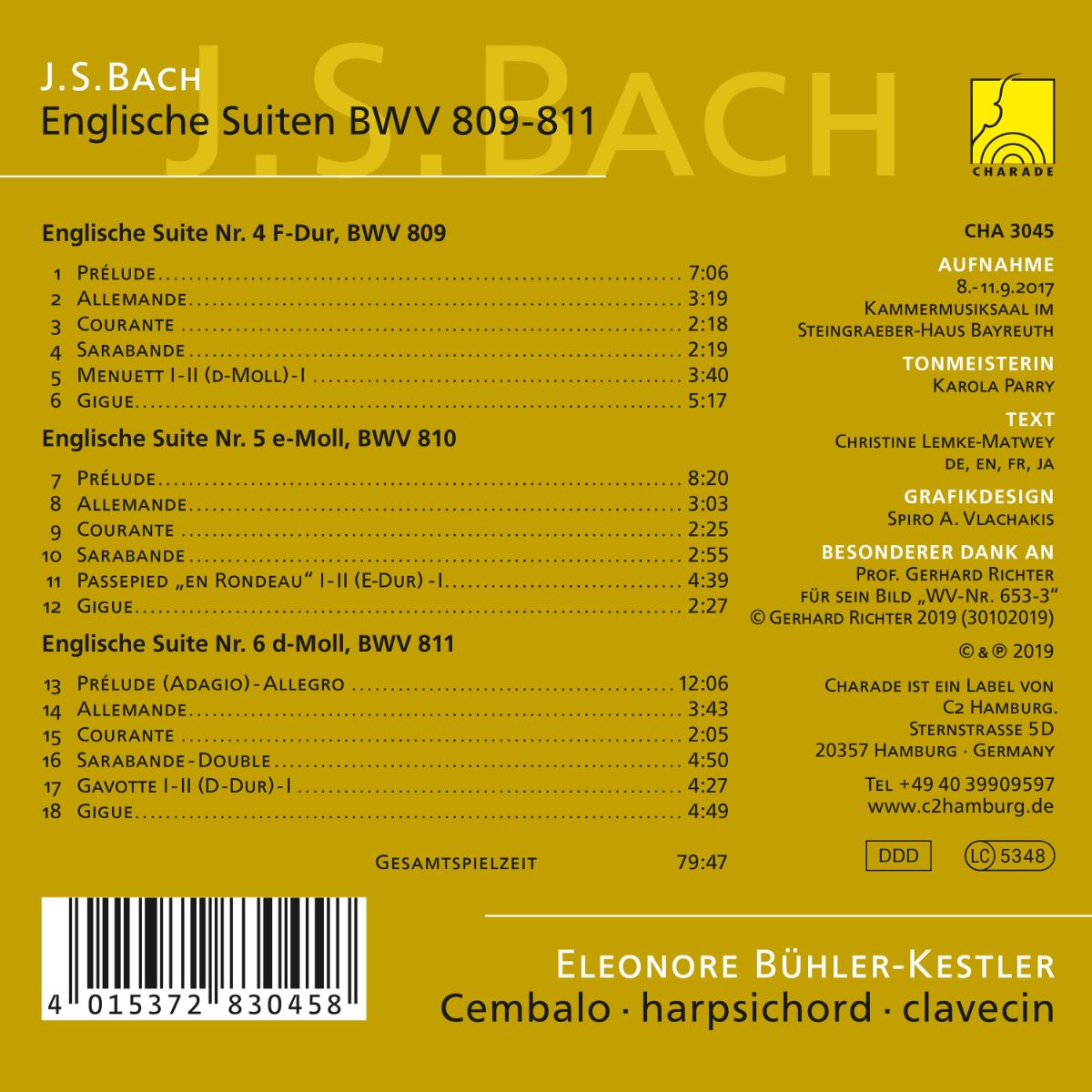 J.S. Bach: Englische Suiten BWV 809 - 811