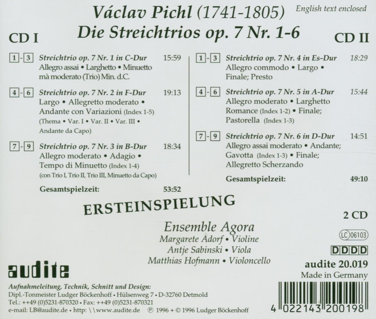 Pichl: Die Streichtrios op. 7, Nr. 1-6