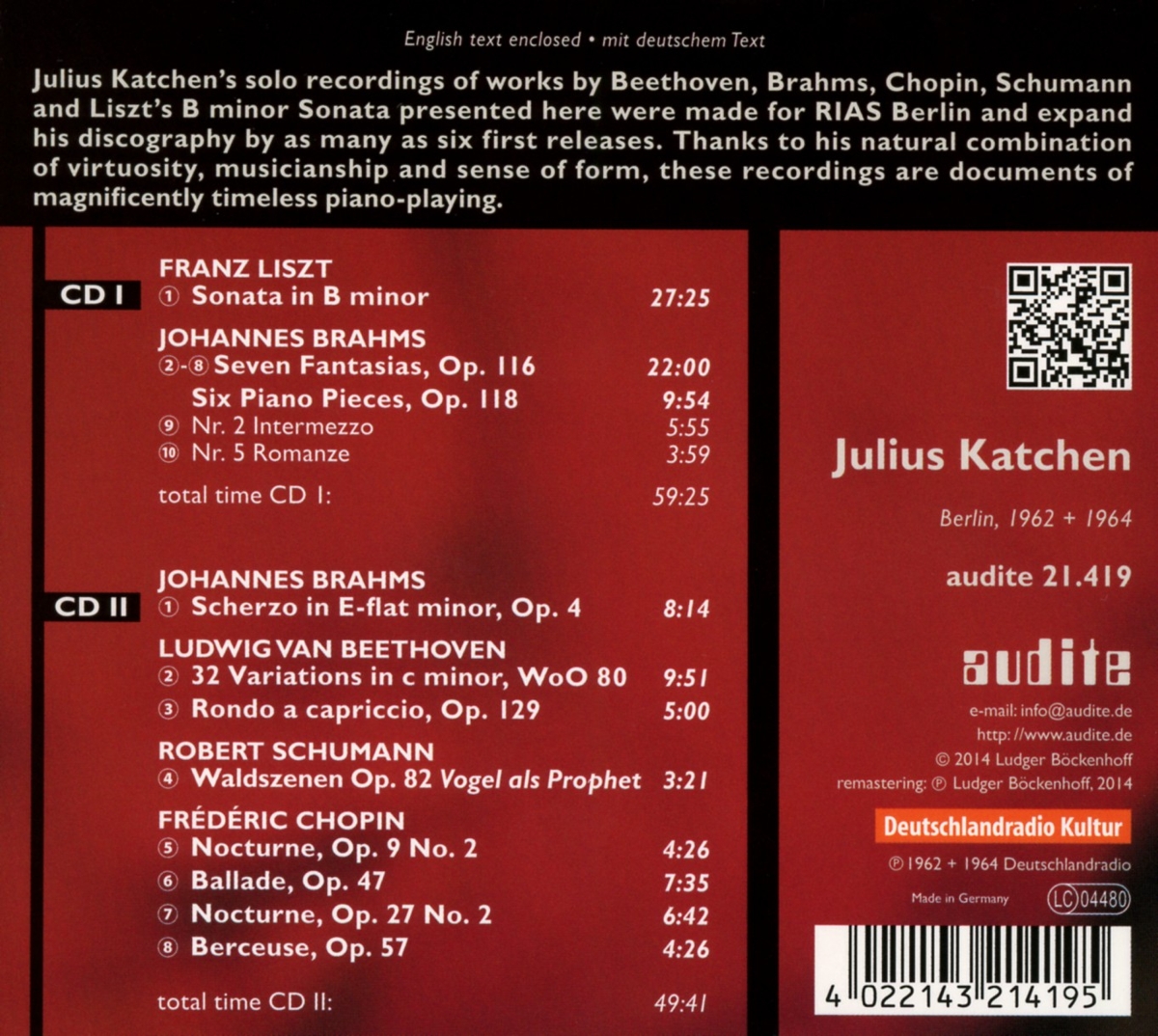 Julius Katchen spielt Liszt, Brahms, Beethoven, Schumann und Chopin