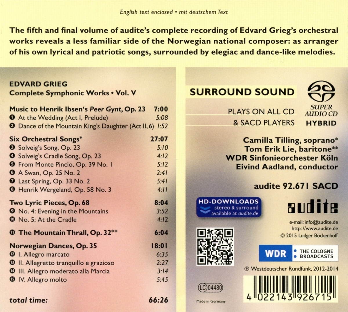 Grieg: Sämtliche sinfonische Werke, Vol. 5