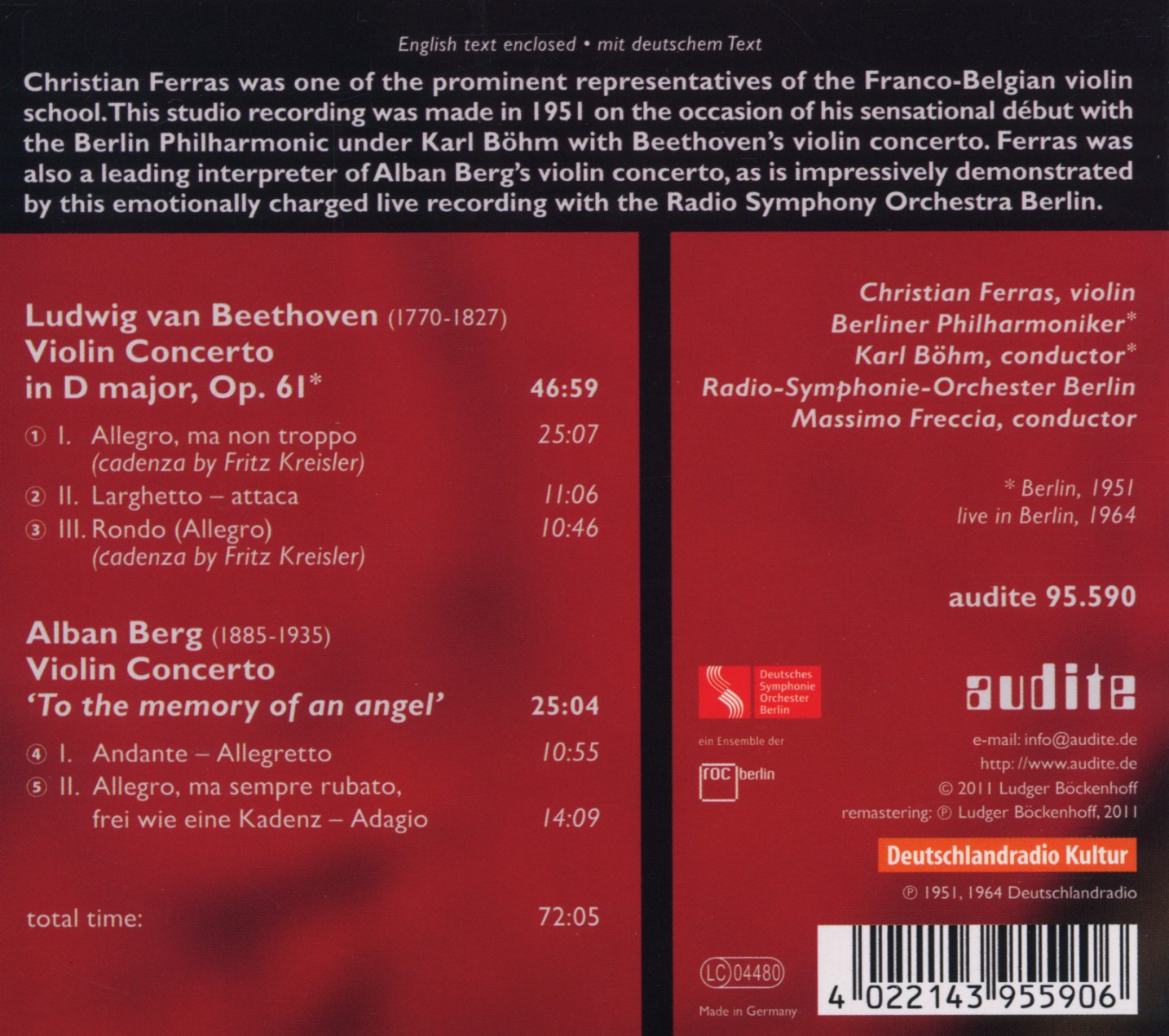 Christian Ferras spielt Violinkonzerte von Beethoven und Berg