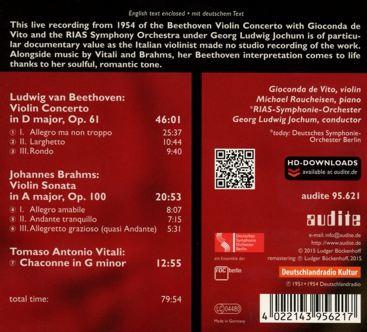 Gioconda de Vito spielt Beethoven, Brahms & Vitali