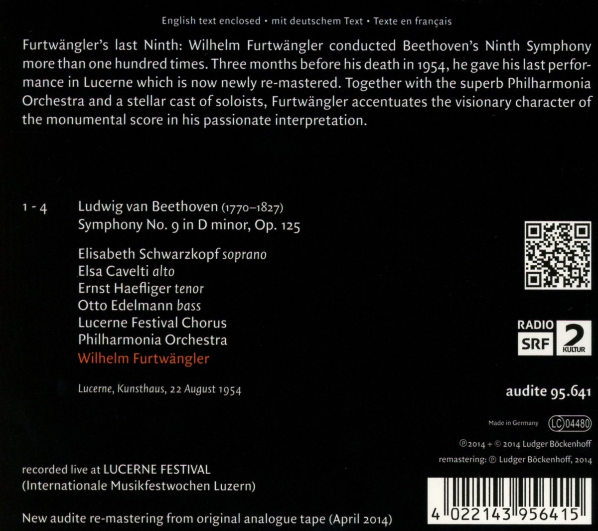 Cavelti, Elsa / Edelmann, Otto / Furtwängler, Wilhelm / Haefliger, Ernst / Lucerne Festival Orchestra / Philharmonia Orchestra / Schwarzkopf, Elisabeth