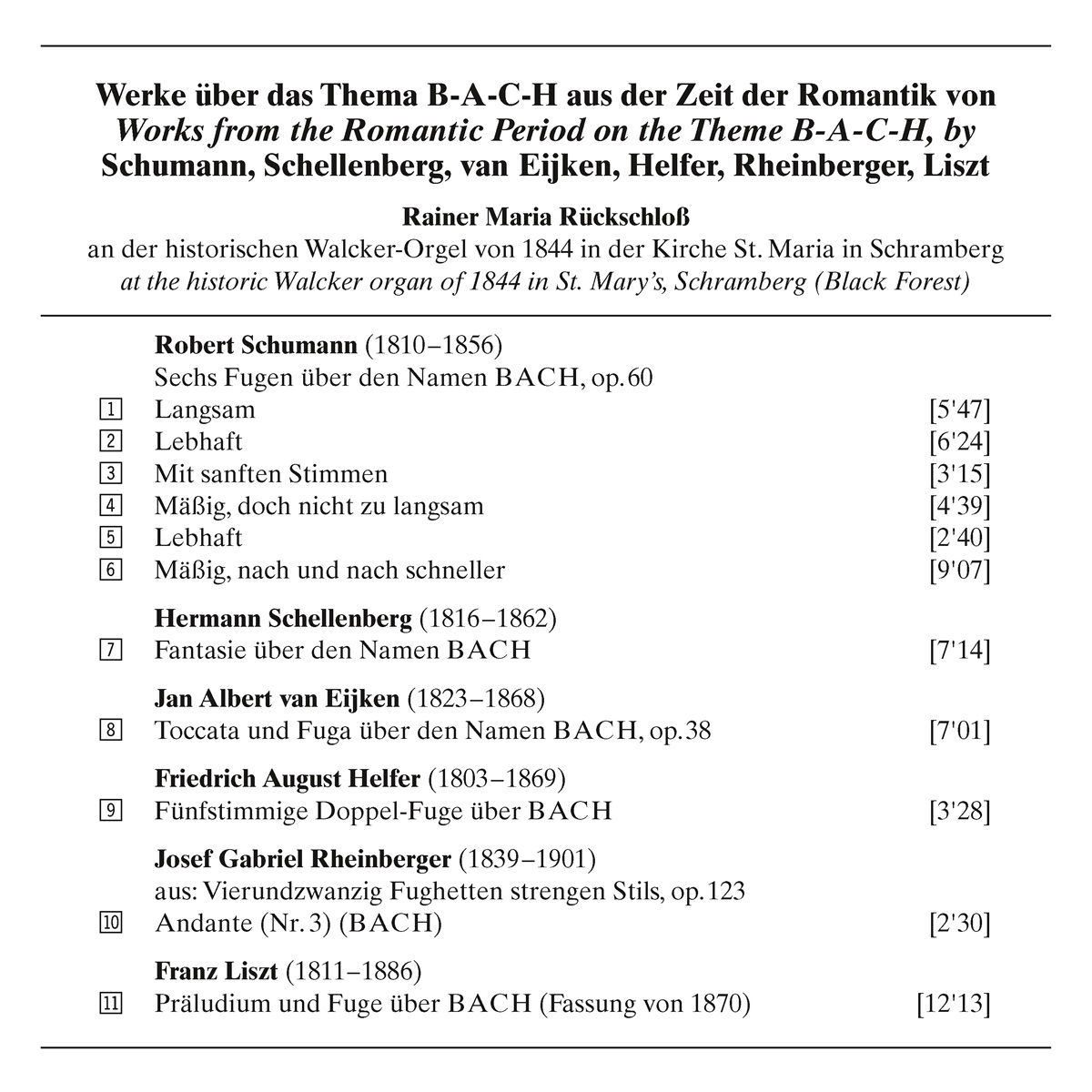 Orgelwerke über das Thema B-A-C-H aus der Zeit der Romantik