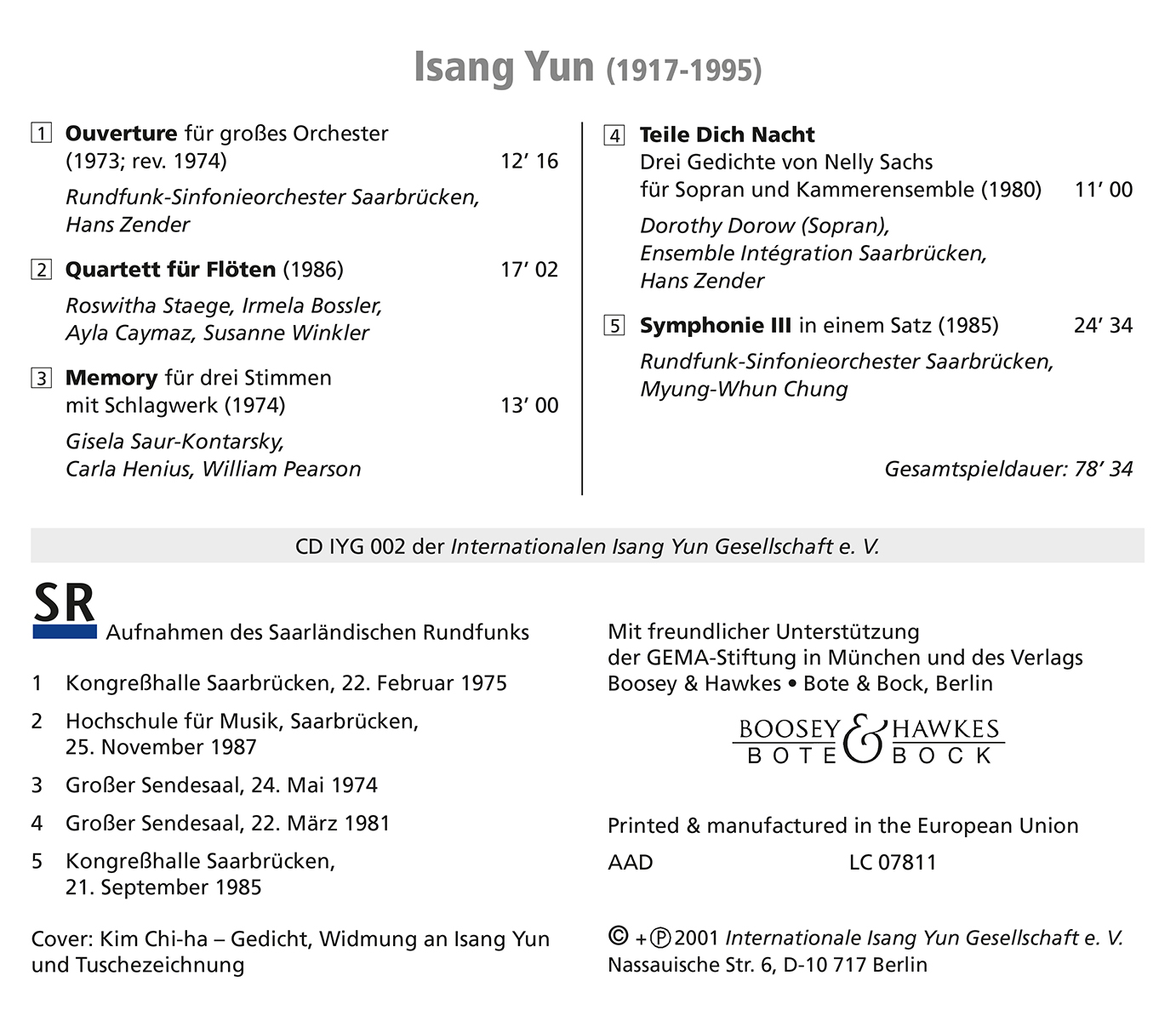 Rundfunk-Sinfonieorchester Saarbrücken / Staege, Roswitha / Bossler, Irmela / Caymaz, Ayla / Winkler, Susanne / Saur-Kontarsky, Gisela / Henius, Carla / Pearson, William / Dorow, Dorothy / Ensemble Integration Saarbrücken / Zender, Hans / Chung, Myung-Whun