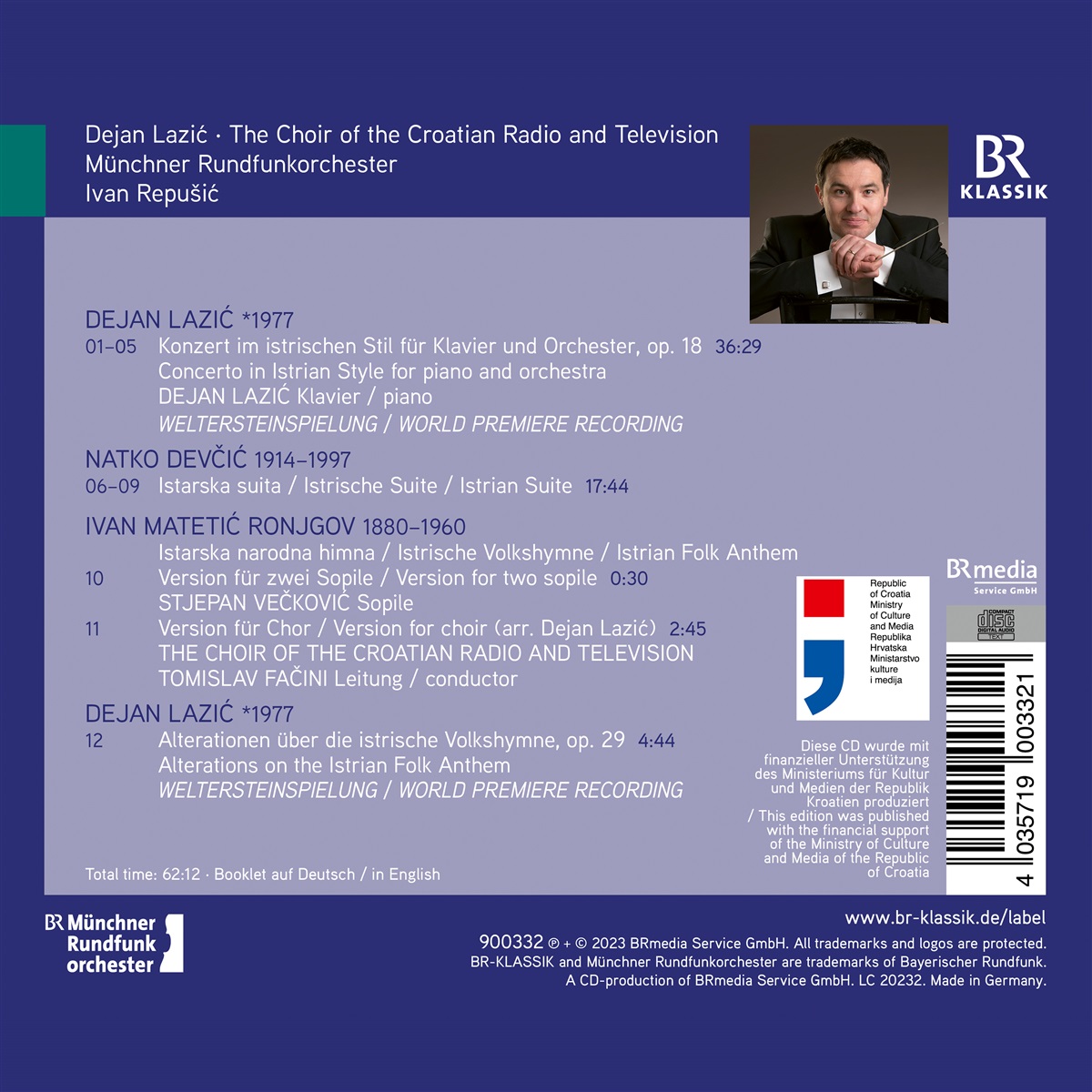 Die Volksmusik der Halbinsel Istrien ist ebenso charakteristisch wie außergewöhnlich. Ihre Melodien, Harmonien und Rhythmen sind eigentümlich und spiegeln den Schmelztiegel aus kroatischen, slowenischen und istro-venezianischen Kultureinflüssen wider. Die Musik mit ihren asymmetrischen Rhythmen basiert auf der sogenannten ‚pentatonischen istrischen Tonleiter‘, die ihr einen ganz eigenen Klang verleiht. Zahlreiche einheimische und nicht-istrische Musiker und Komponisten ließen sich von ihr faszinieren; darunter der kroatische Komponist Natko Dev?i? mit seiner „Istrischen Suite“ für Orchester (1946) oder der junge kroatische Pianist und Komponist Dejan Lazi?, dem Solisten des vorliegenden Albums, der hier sein eigenes „Konzert im istrischen Stil“ und seine „Alterationen über die istrische Volkshymne“ erstmalig einspielt.